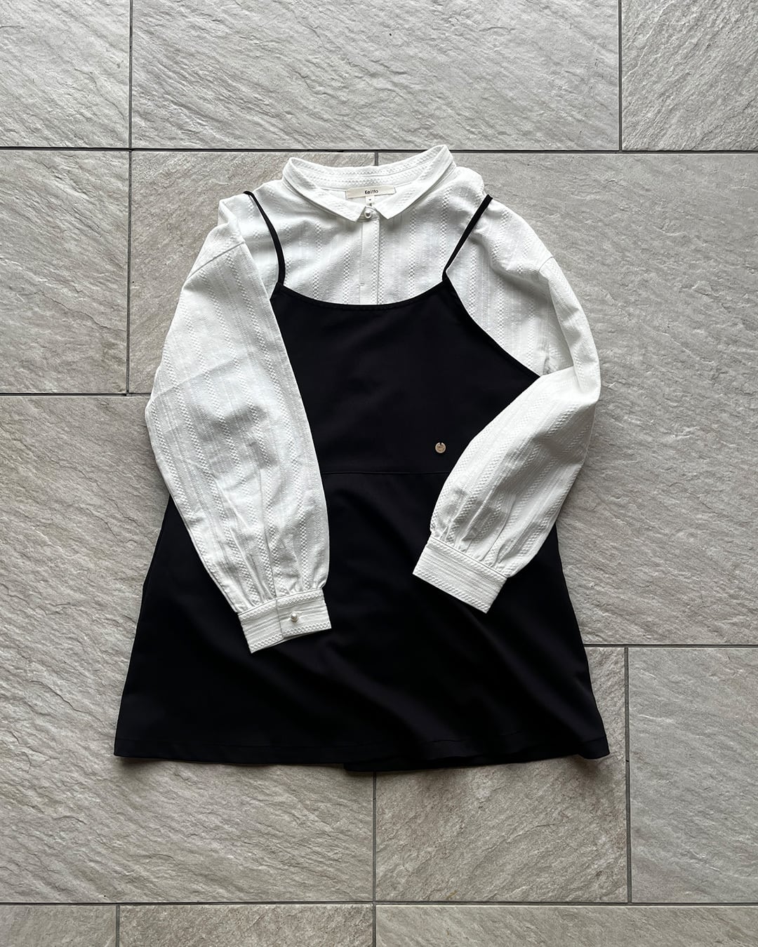 ロング丈のシャツワンピースに重ねてジレ風に羽織れば、抜け感のあるナチュラルスタイルに。また、シャツやTシャツとの重ね着にも相性抜群。ボトムにはワイドパンツを合わせて、ゆるやかな春の空気感を楽しめます。レイヤードスタイルにぴったりな、軽やかで着回し力の高い一枚です。 【Color】キナリ / グレー / モカ 【Fabric】ポリエステル66% 綿34% -------------------------------------------------------------------------------- サイズ表: M 身巾48cm 着丈49cm(肩ひも含む) L 身巾52cm 着丈52cm(肩ひも含む) モデル身長:167cm(Mサイズ着用)