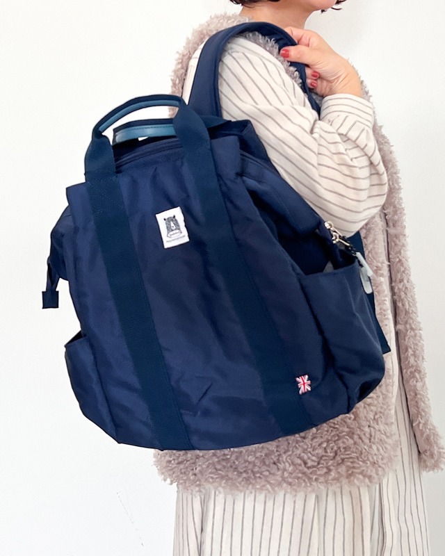 ナイロン製のジムボバートガバっとリュック。 とにかくたっぷり荷物が入る大容量。 様々なサイズのポケットが付いているので、持ち物に合わせた収納が可能です。 通勤や通学、旅行やレジャー、マザーズバッグにも最適◎ メインスペースの収納口がガバっと大きく開き、荷物の出し入れがスムーズに。 内生地は可愛らしいクマの総柄になっています。 【ポケット】 外側:ファスナーポケット×2、ボタン付きポケット×1、オープンポケット×2 内側:ファスナーポケット×1、オープンポケット×2 【ジムボバート】:ロンドンを拠点に大手ブランドからもオファーを受ける人気イラストレーター。 独特なタッチで描かれる擬人化されたリアルな動物たちは、時に和ませ、時にメッセージを伝え見る人を魅了します。 【サイズ】約:高さ38 横幅27 マチ13.5 ハンドル25.5 ショルダー47~88 【重さ】610g 【素材】ナイロン