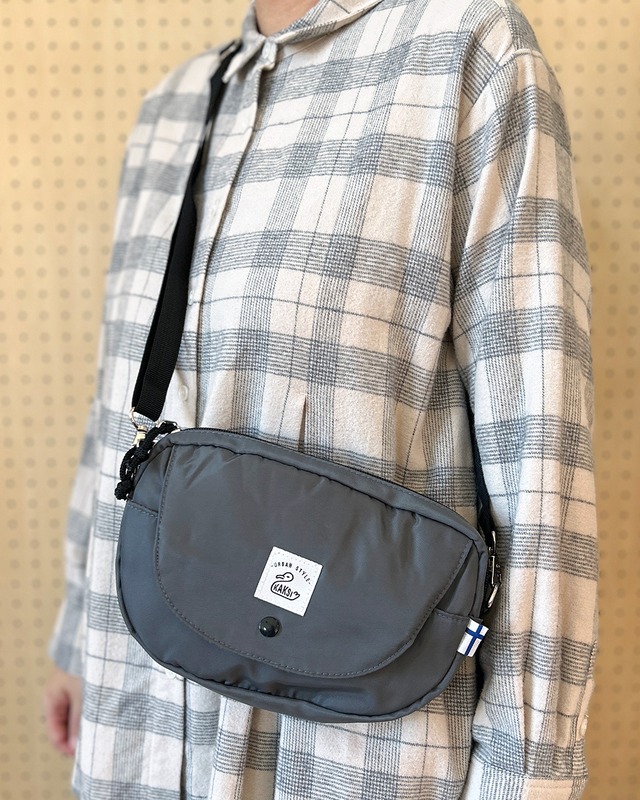 【小ぶりでかわいいフォルムのショルダーポーチ】 小ぶりでコロンとしたお月様のようなショルダーポーチ。 かわいいフォルムですが、ベーシックなカラーと光沢のある生地感で、ユニセックスにお使いいただけます。 コンパクトな見た目ながら、メインポケットは長財布がしっかりと入るサイズ感。 お財布やスマホ、ちょっとしたメイク用品や衛生用品を入れたミニポーチなども収納可能です。 【使い勝手抜群のポケットがいっぱい】 フラップを開けるとポケットがふたつ。 メッシュポケットには、リップやイヤホンなど小物を収納できます。 フロントのフラップポケットは仕切りがないので、用途に合わせて様々な使い方が可能。 ポーチ背面は便利なクリアポケット仕様で、チケット、鍵、スマホなど、大事なものを目に見えて収納できます。 【商品サイズ】 ポーチサイズ:約 25cm×縦16cm×マチ6cm クリアポケットサイズ:約 横23cm×縦11cm ショルダーベルト(金具含む):最短 約74cm/最長 約137cm ▲スライダー付きで長さ調節可能 製品素材:ポリエステル 生産国:中国 ※各サイズは若干の個体差がございます。 【ご使用上の注意】 ・クリアポケットの素材の特性上、同じビニール素材やプリント製品を入れると貼りつきや色移行の可能性がございます。ご注意ください。