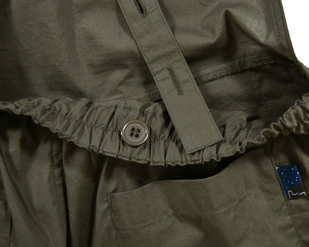 涼しげな綿の平織り生地を使用しています。後ろポケットの脇には夜空を描いたピスネームをつけました。汚れが目立ちにくく、合わせやすい、ブラック・カーキの2色展開です。