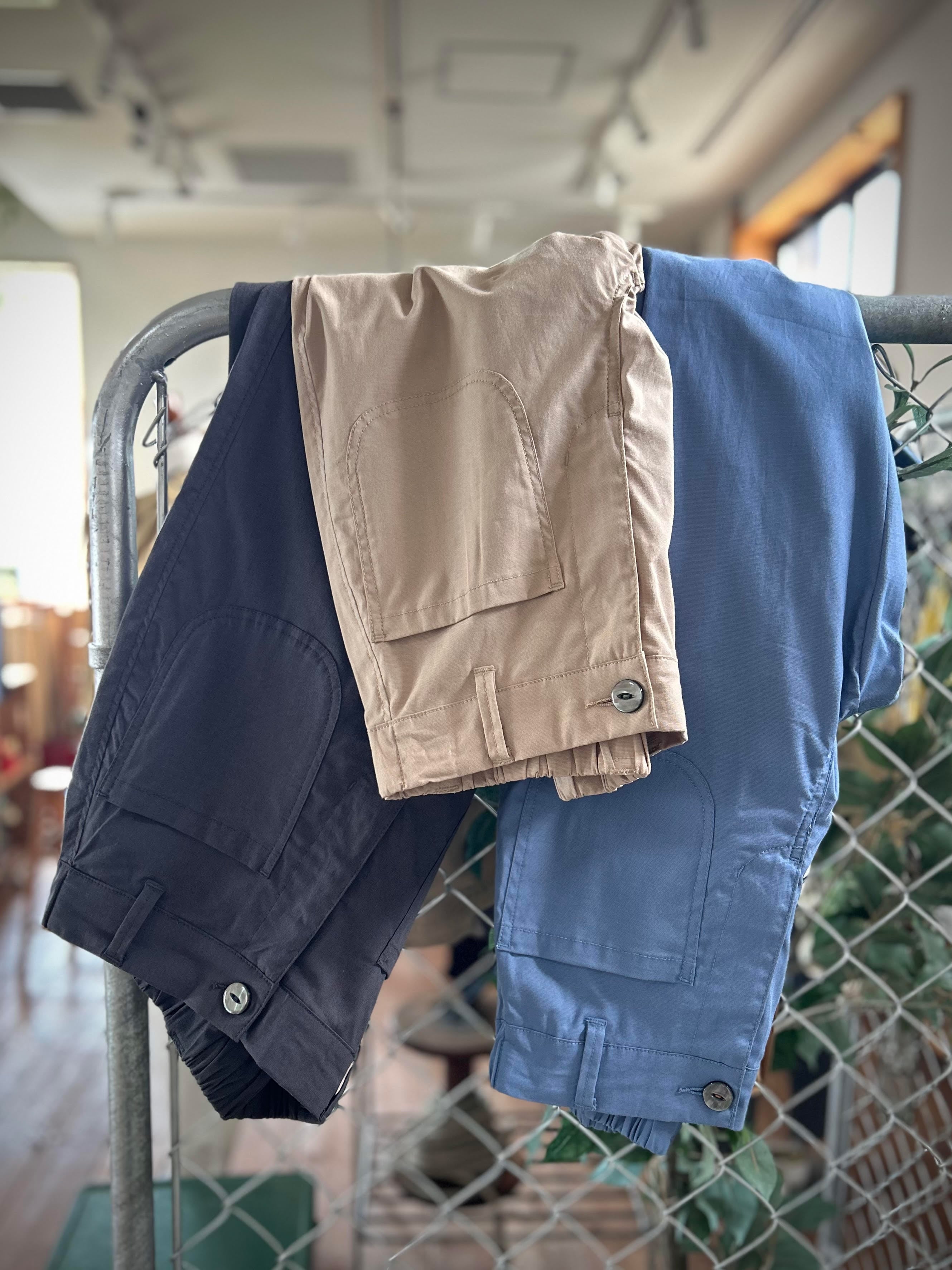 サイド切替えで立体感をプラスしたワークテイストなテーパードパンツ。
