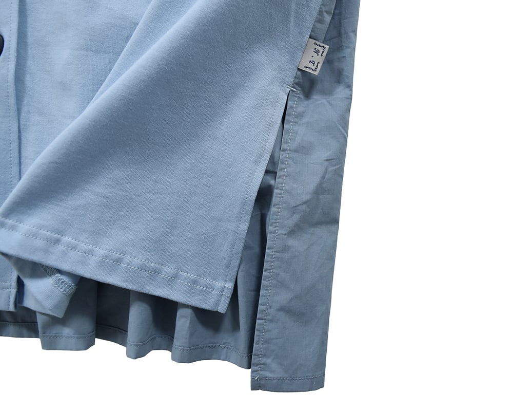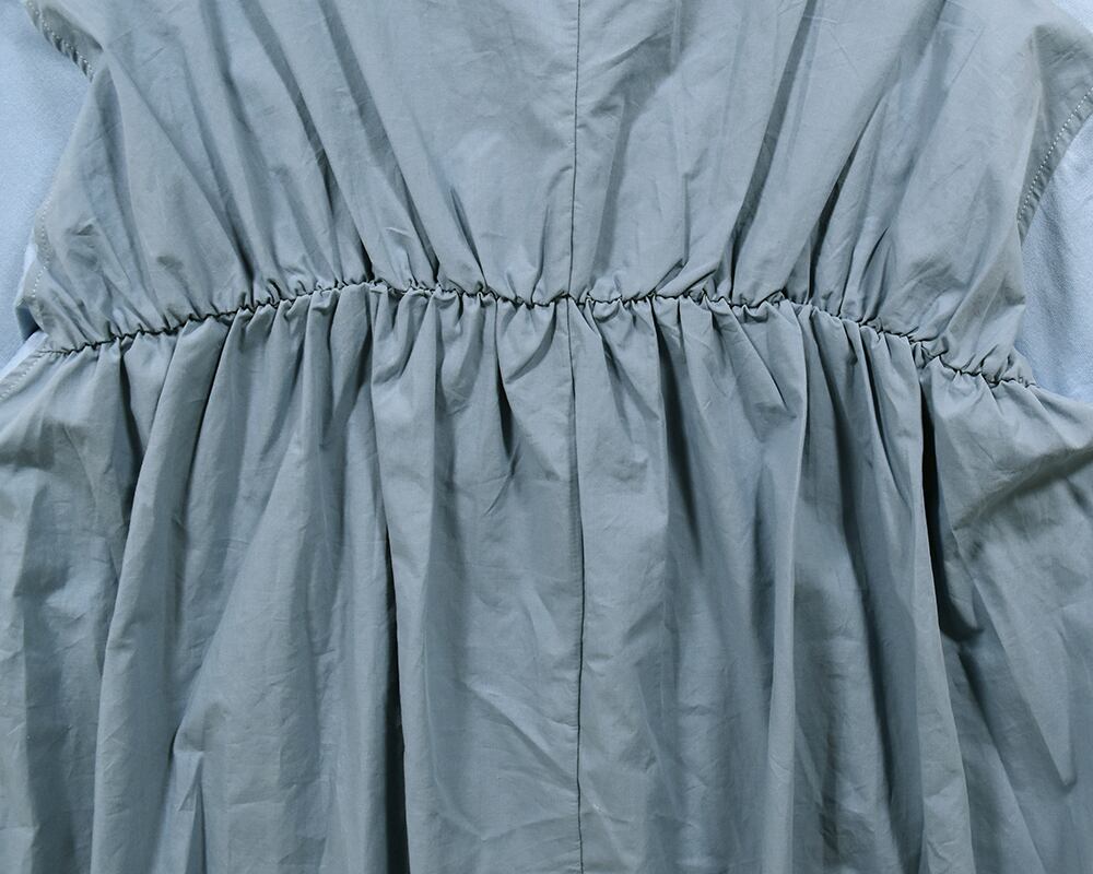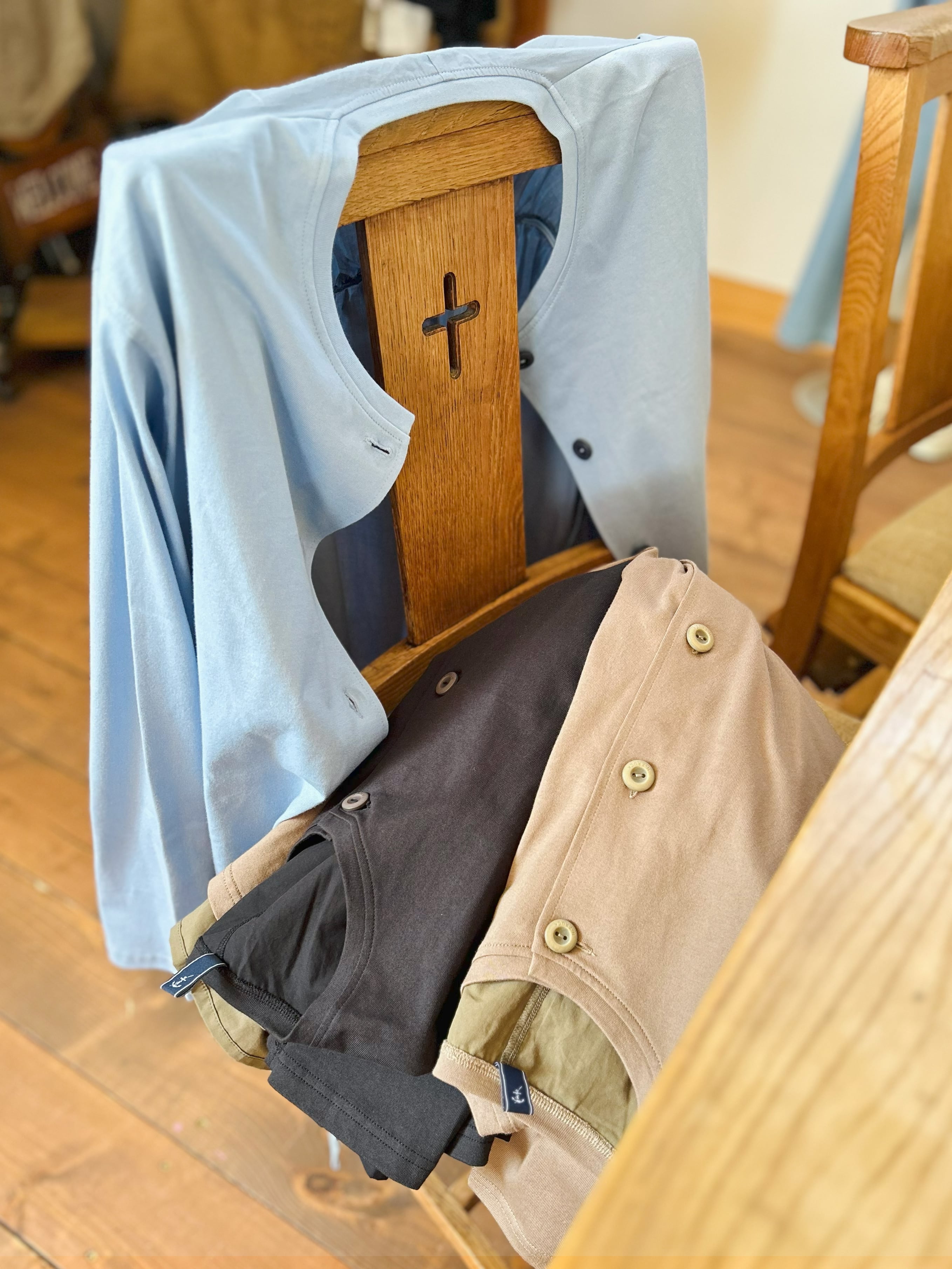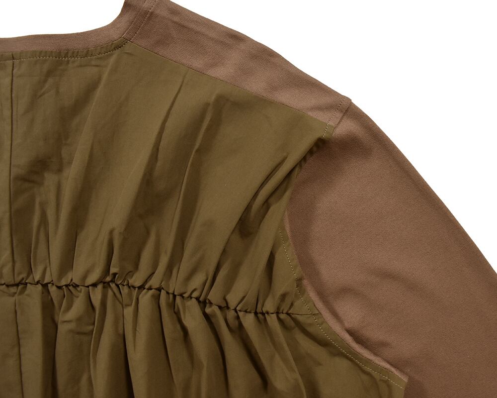 異素材を組み合わせたロング丈のカーディガン。後ろ身頃に布帛を使用しシャーリングをたっぷり入れた、バックスタイルもお楽しみいただけるデザインになっています。深めのスリットが入っているので動きやすく、チュニックとしてや羽織りとして便利なアイテムです。