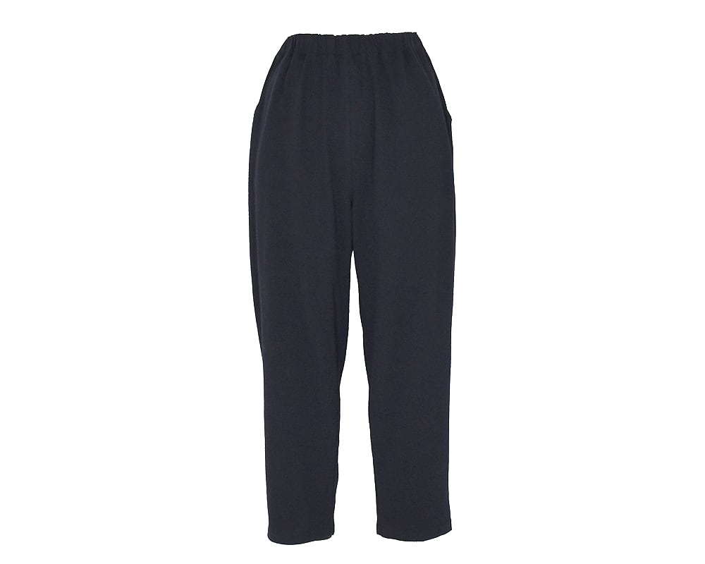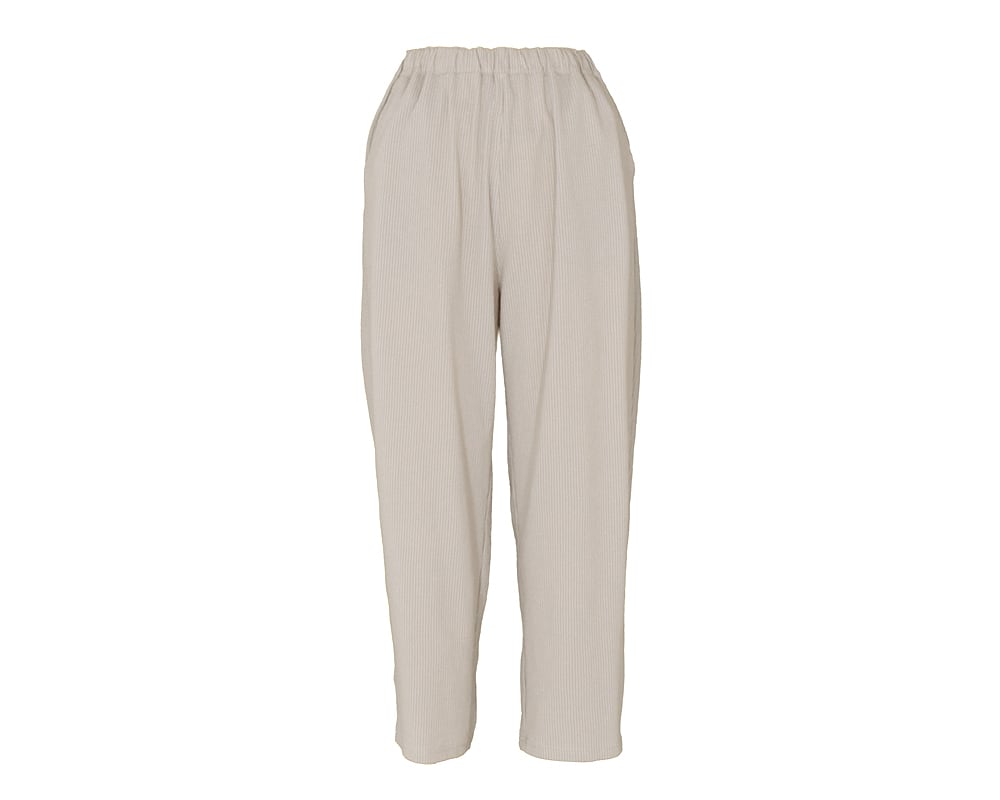 程よくゆとりがあり、ストレッチ素材でリラックスした穿き心地のテーパードパンツです。ウエストは総ゴム仕様。両脇、後ろポケットあり。ウエスト内紐入り。SFCE5458のトップスと同素材で、セットアップでご着用いただけます。