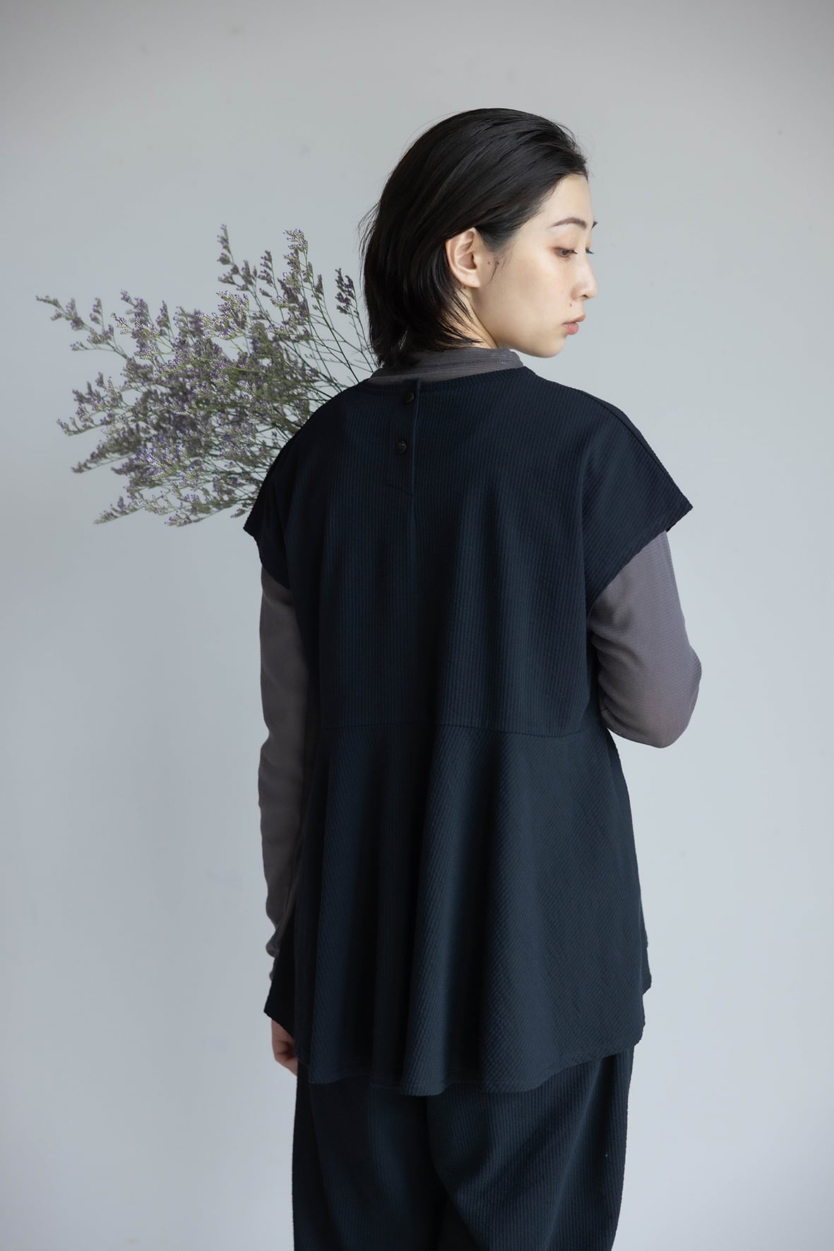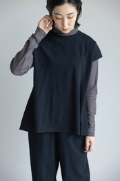 ストレッチ素材で楽な着心地の、バックフレアーシルエットのプルオーバーです。SFBE5459のパンツと同素材で、セットアップでご着用いただけます。