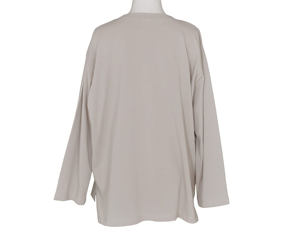 前身頃に布帛、後身頃と袖にカットソー素材を使用しています。布帛とカットソーとも、透け感が気にならない程よい厚みのあるコットン素材です。