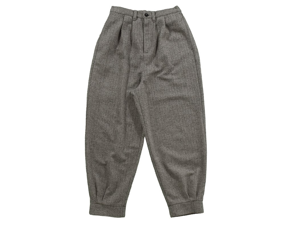 フルレングスのキレイ見えするパンツです。ブルゾンと同じ、ヘリンボーン柄生地と、