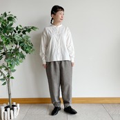 ビエラ生地を使用しています。裾に切り替えを付け、少し丸みを帯びたシルエットです。