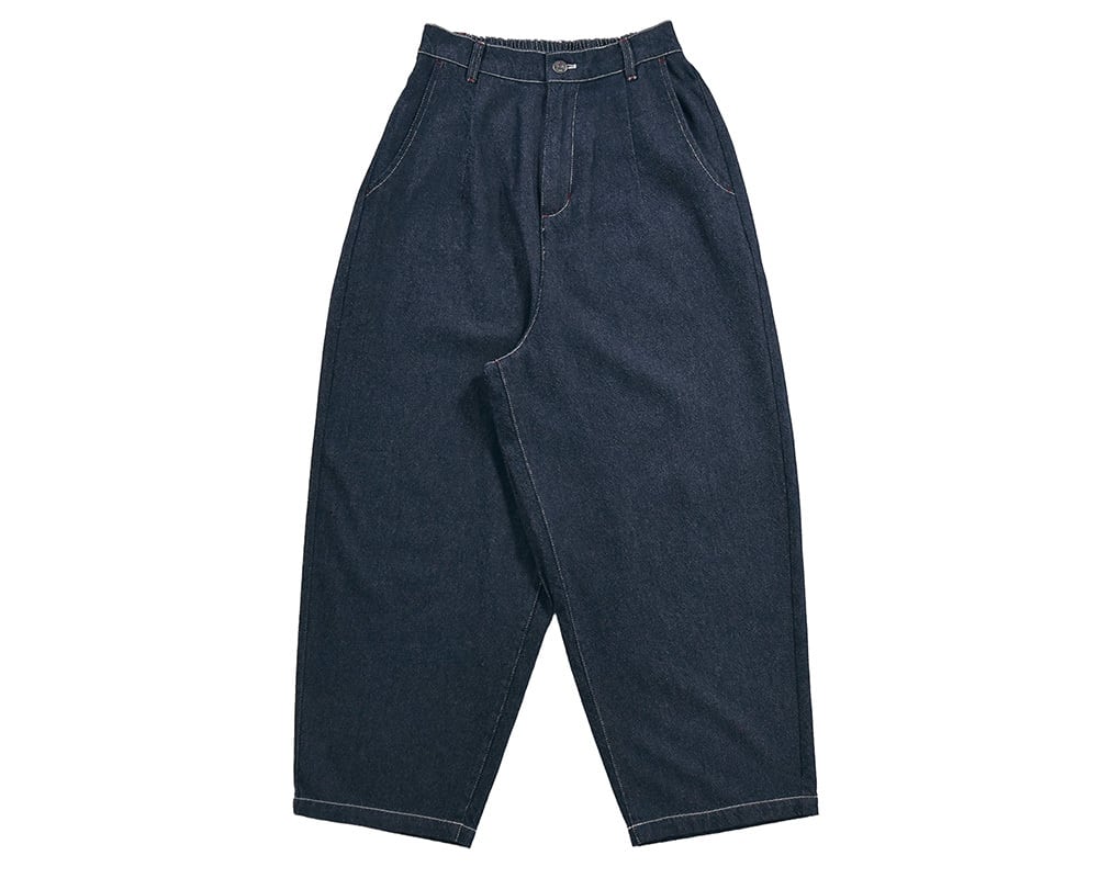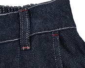 ジャケットと同じ、デニム調の先染めツイル生地を使用しています。