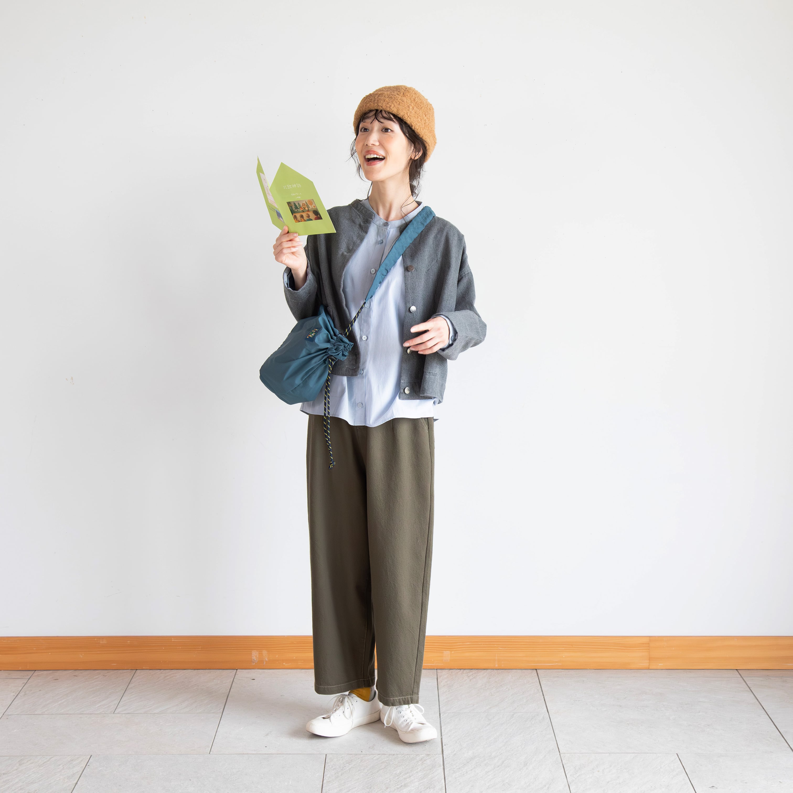 先染めのグレーとネイビーは同じ色のジャケットと合わせてセットアップの着こなしも可能です。
