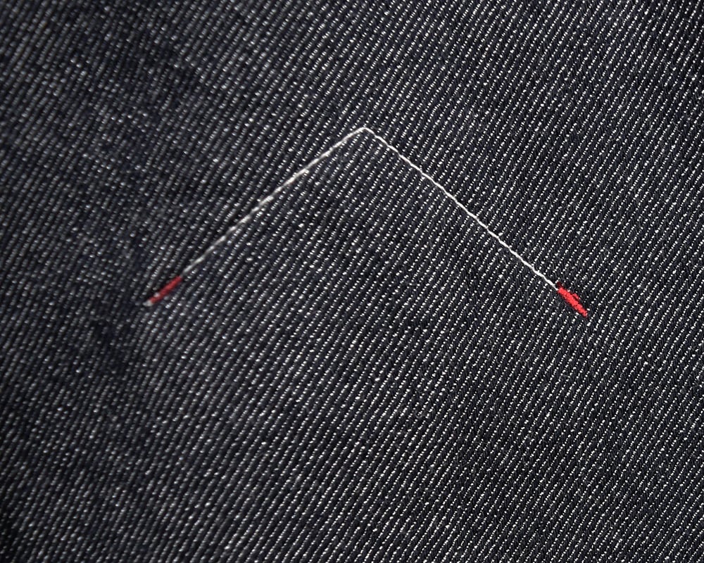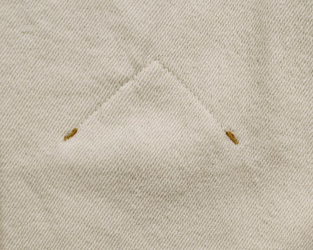 左胸の内ポケットは、留めステッチを表に見えるようにしてデザインポイントにしました。