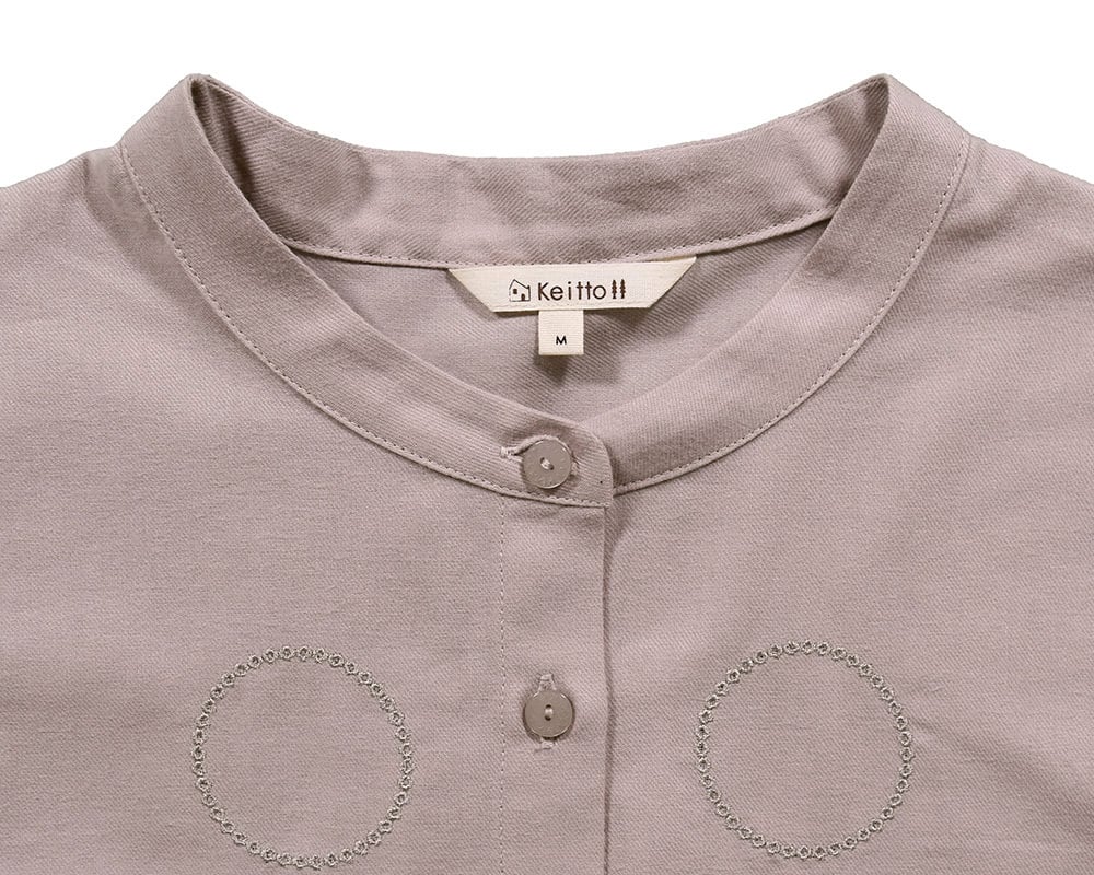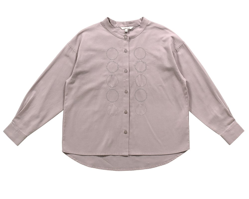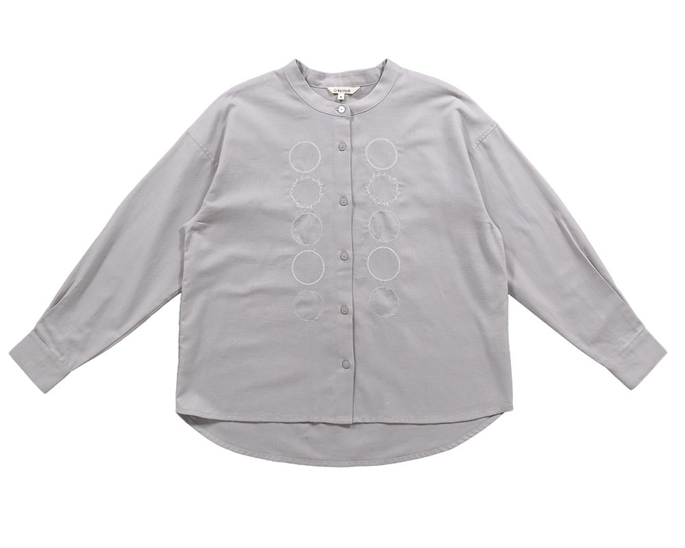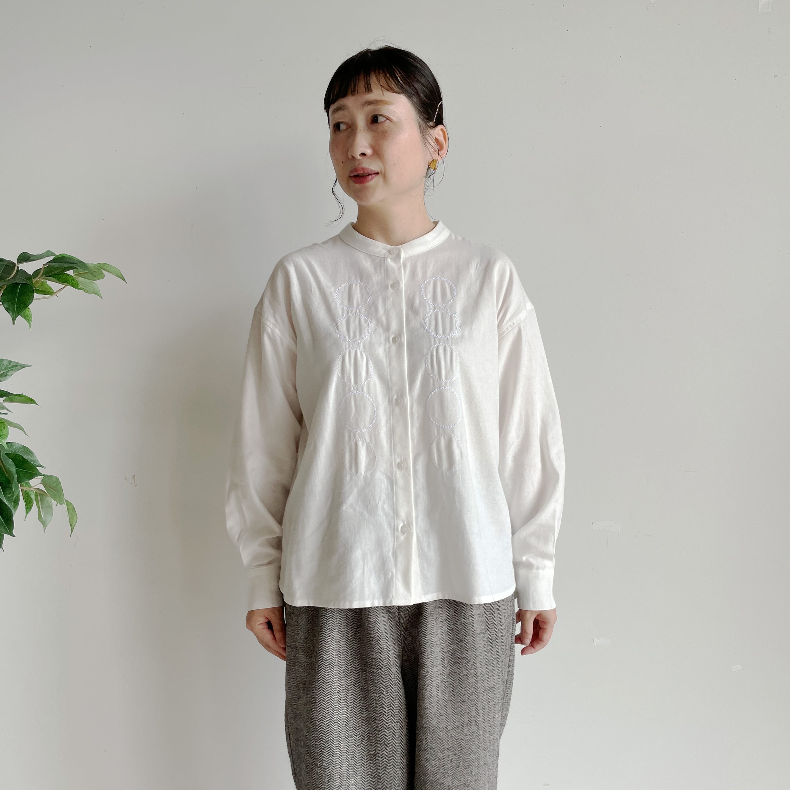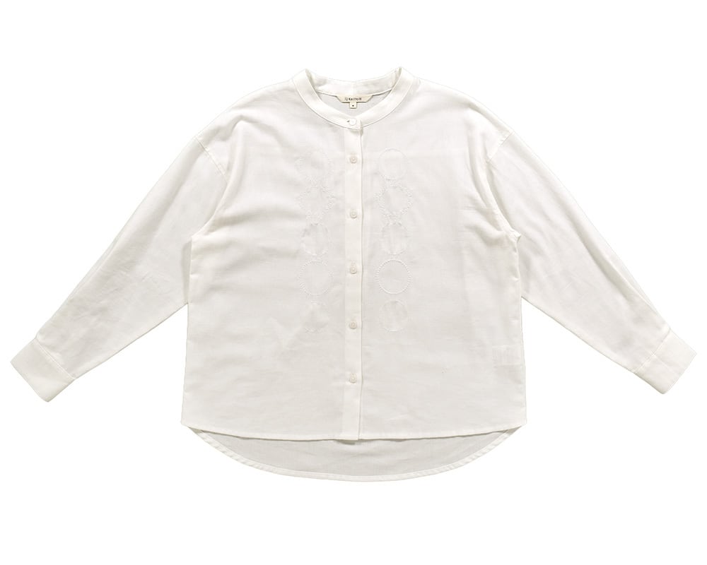 控えめな刺繍が施された、きれいめなシャツブラウスです。