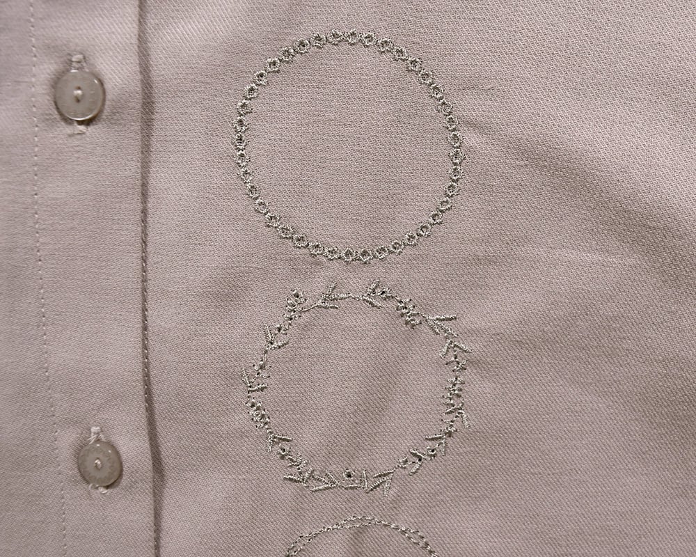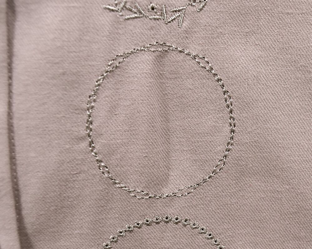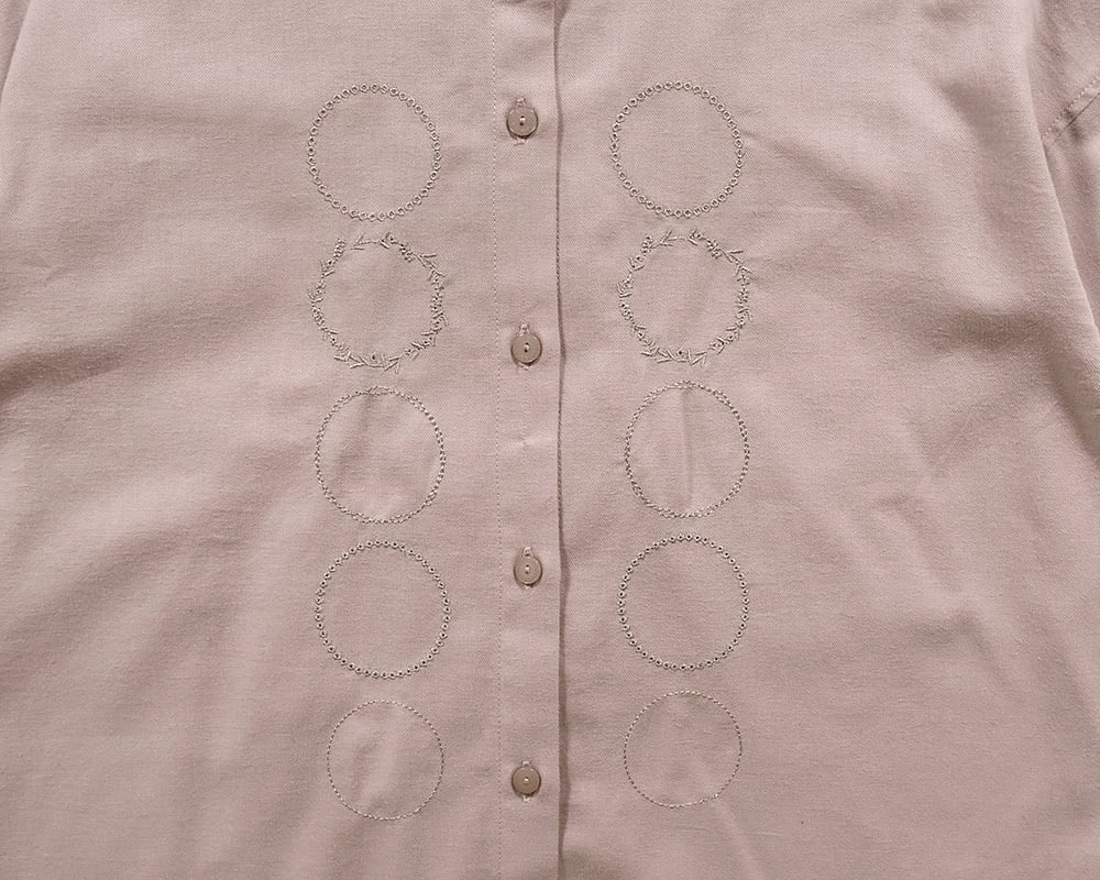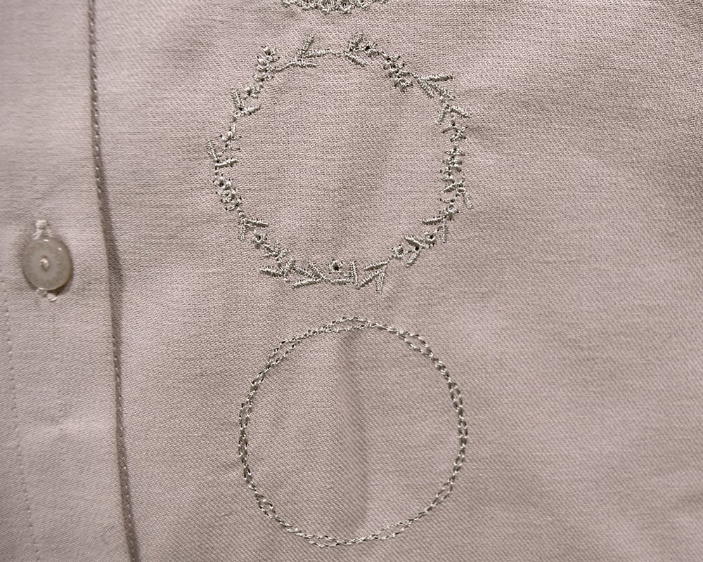 縦に並ぶサークル刺繍は、よく見るとすべて異なる図案になっています。