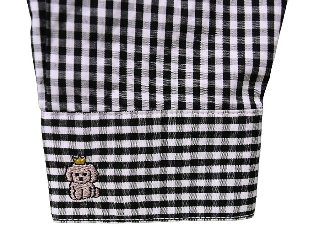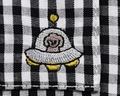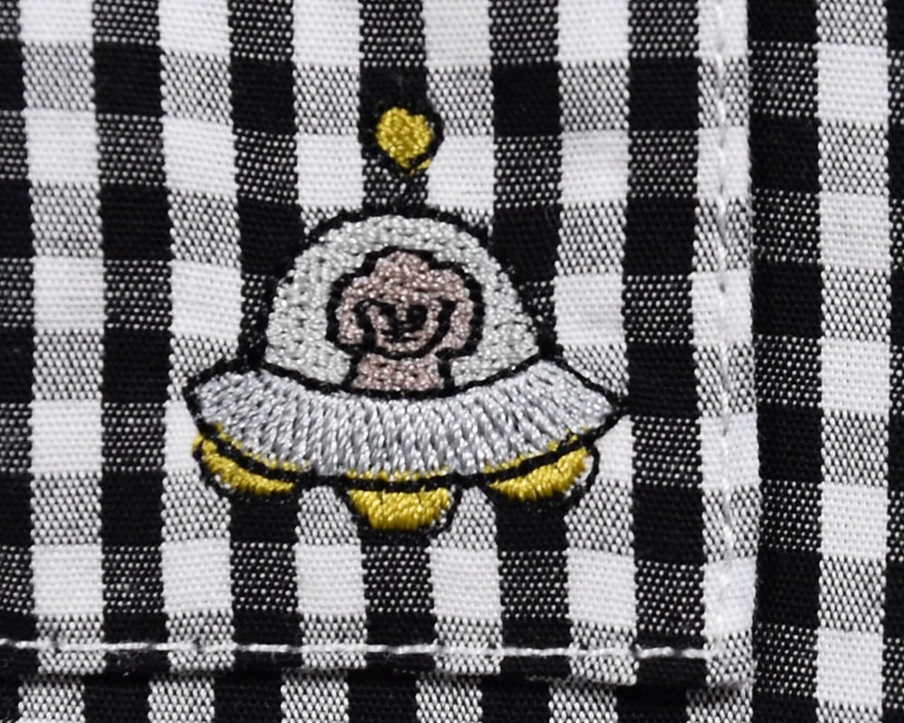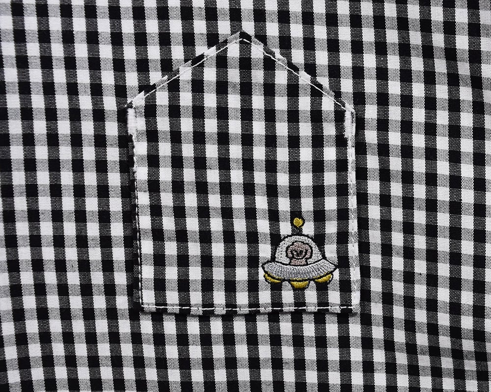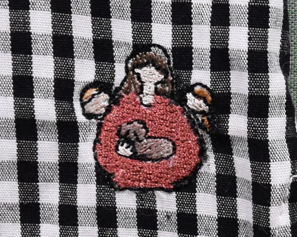 胸ポケット・左裾・右袖口カフスに、人形劇のストーリーにちなんだワンポイント刺繍を入れています。