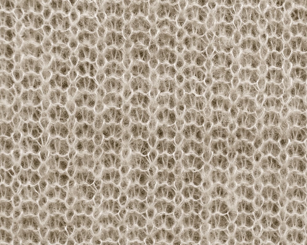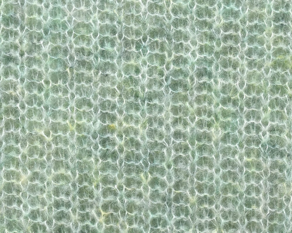 モヘアのような毛足のある糸を透け感のある編地に仕上げました。
