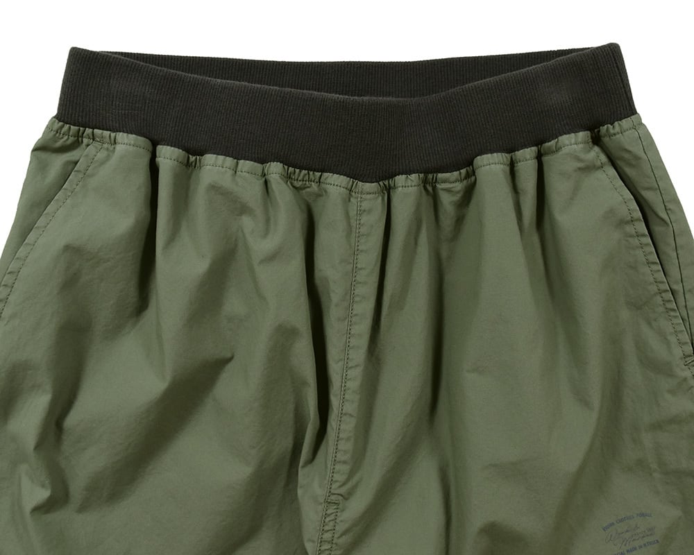 高密度の平織生地を使用した、ハリ感のある裾バンディング仕様のパンツ。バルーンパンツのゆとりとテーパードパンツのすっきり感を組み合わせたシルエットが魅力。80年代のトレーニングパンツから着想を得たデザインで、程よいレトロ感と抜け感をプラス。動きやすく快適で、スポーティーにもストリートにも着こなせる万能アイテムです。