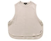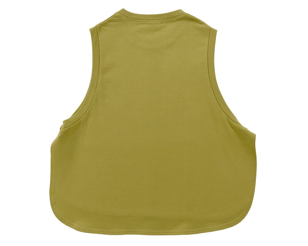 アームホールを深く取り、TシャツやロンTと重ねるだけで抜け感のあるスタイルに仕上がります。裾のラウンドカットが女性らしい柔らかさをプラス。