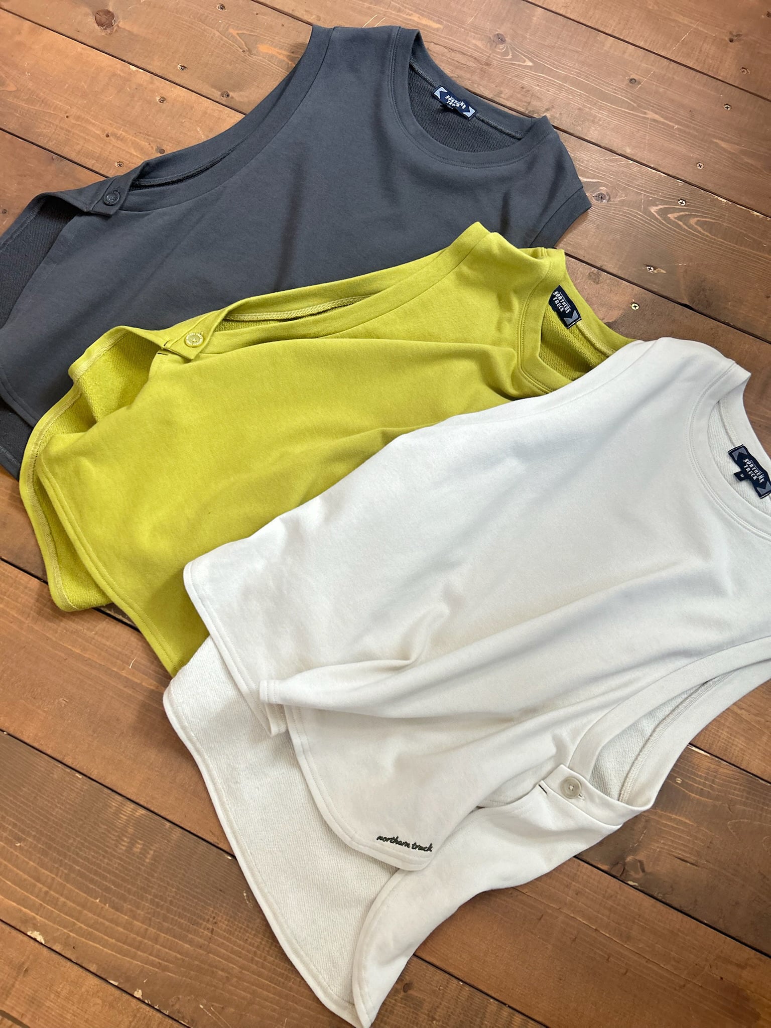 両サイドのボタンがポイントのリラックス感のあるミニ裏毛のベスト。