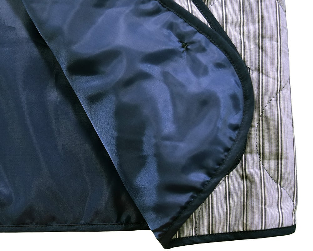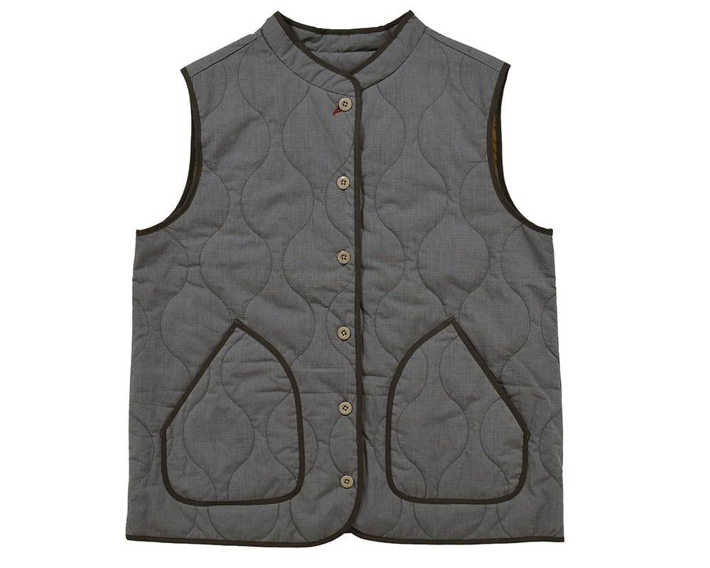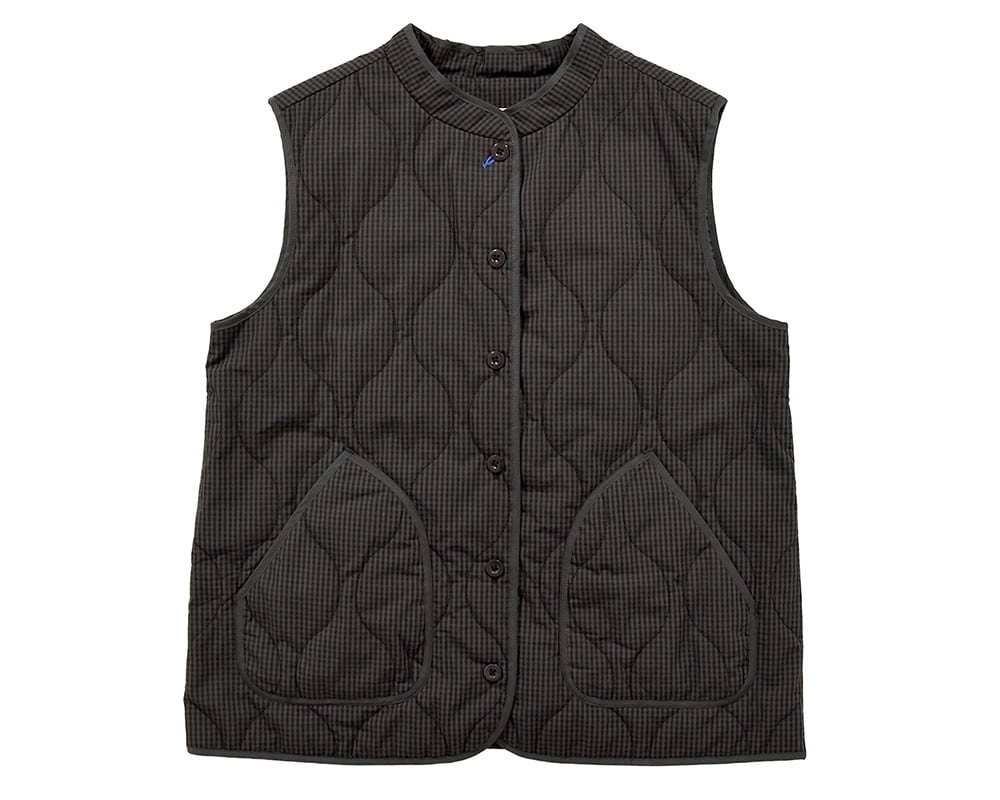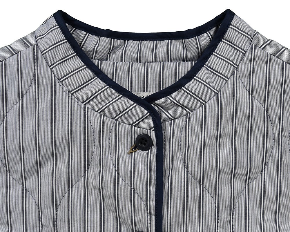 千鳥、先染ギンガムチェック、ストライプの3柄展開で、クラシックな雰囲気を楽しめます。中綿入りでしっかりと暖かく、裏地付きで着心地も快適。すっきりとしたシルエットで、シャツやニットとのレイヤードにも最適。軽やかに羽織れて、防寒性とデザイン性を兼ね備えた便利な一着です。