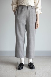 脇から後ろウエストにかけてゴムを入れた仕様のテーパードパンツです。