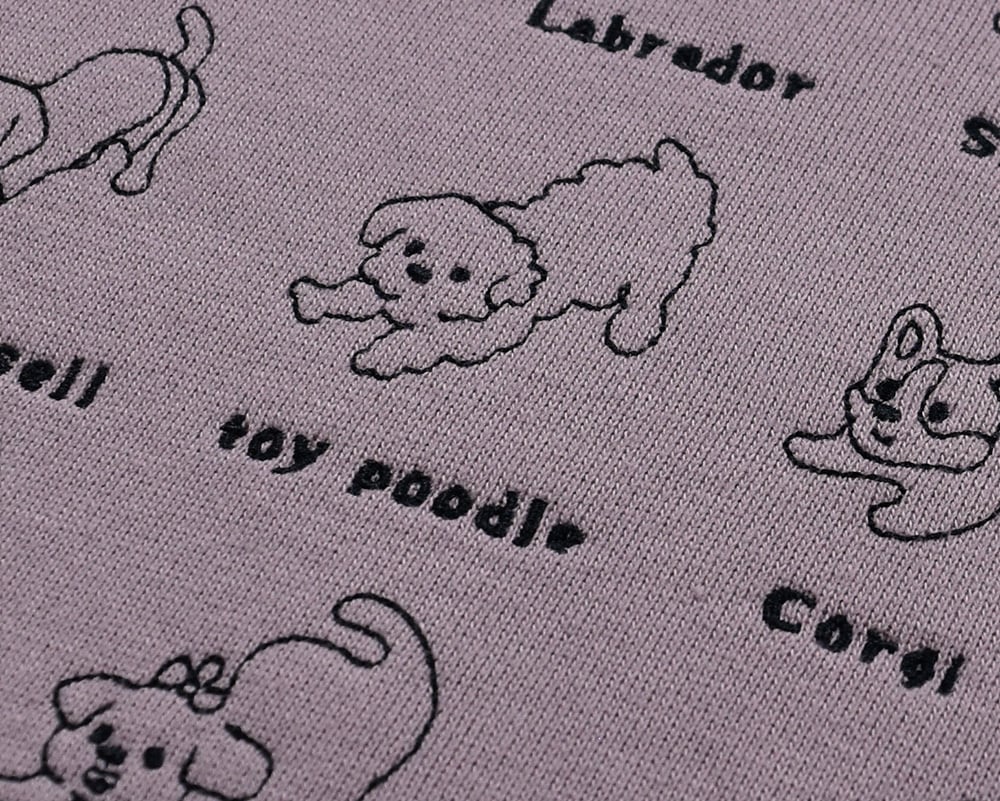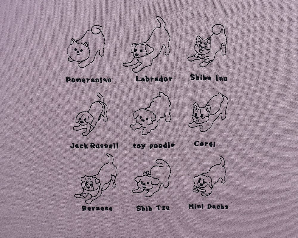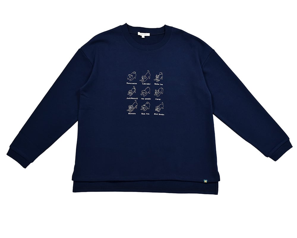 前後差のある着丈で襟ぐり、袖口にリブを使用したカジュアルなプルオーバーです。しっかりめの裏毛生地を使用しました。カラー毎に、犬と鳥の図鑑をイメージした刺繍を施しました。刺繍に合わせて、犬と鳥のピスネームもポイントに付けました。