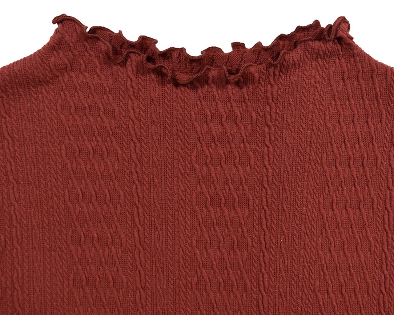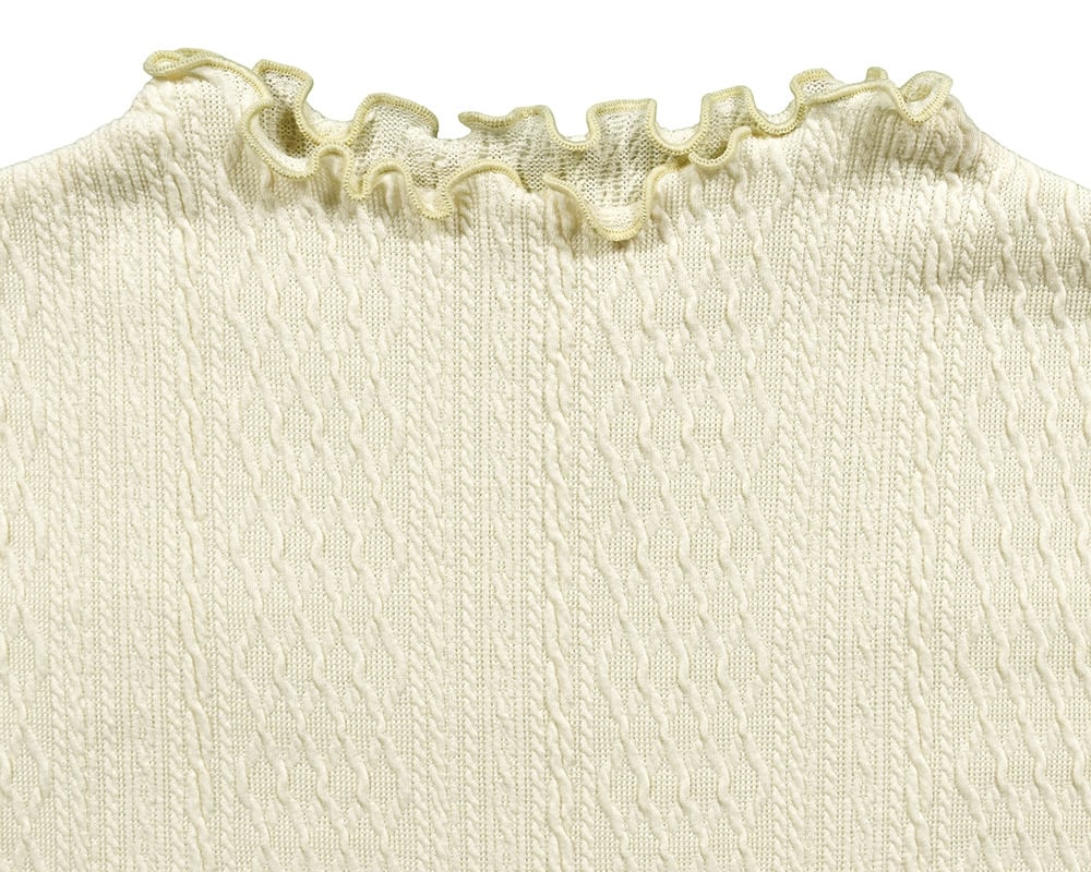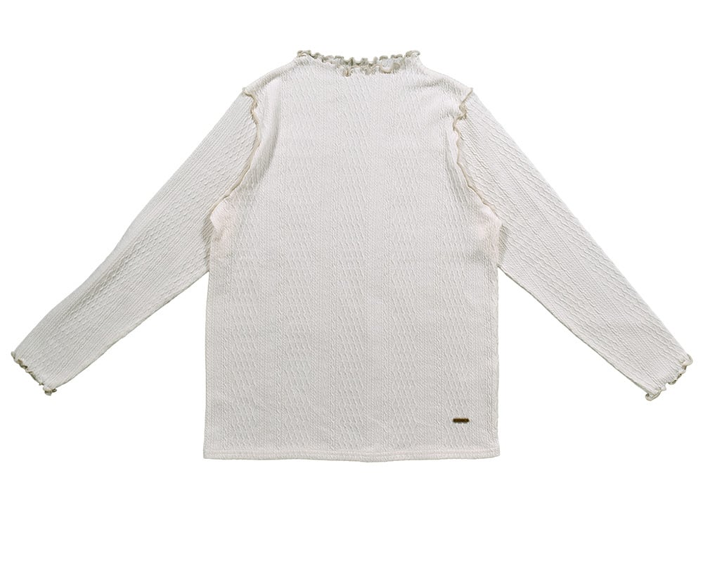 昨年好評いただいた、ふくれジャカードのインナープルオーバーです。モックネックのデザインで、顔回りをすっきり見せてくれます。凹凸感のあるジャカード柄が特徴。今年版は綿混素材で、より肌当たりがよくなるようにしています。端・袖ぐり・袖口のささやかな配色メローがポイント。