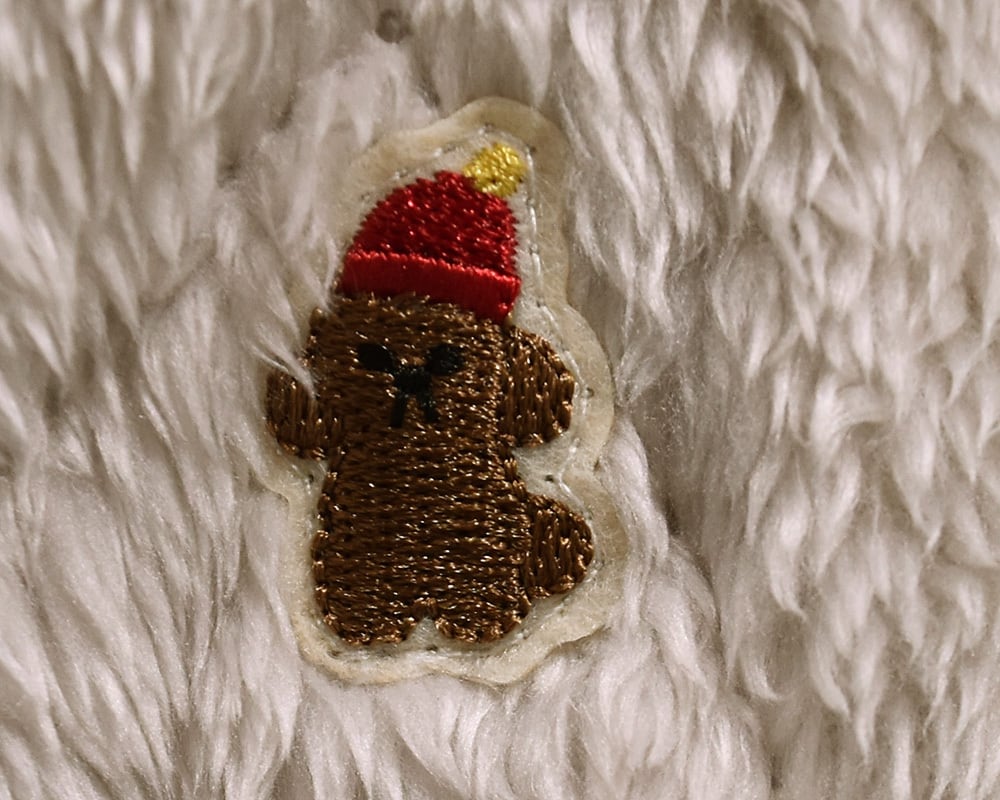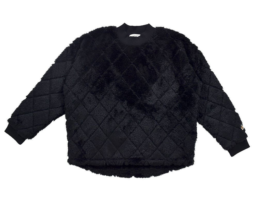 キルティングのように見える加工をしたふわふわのボア生地を使用。