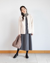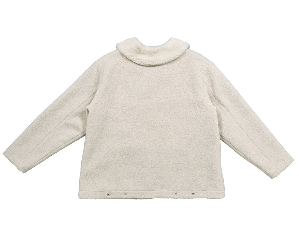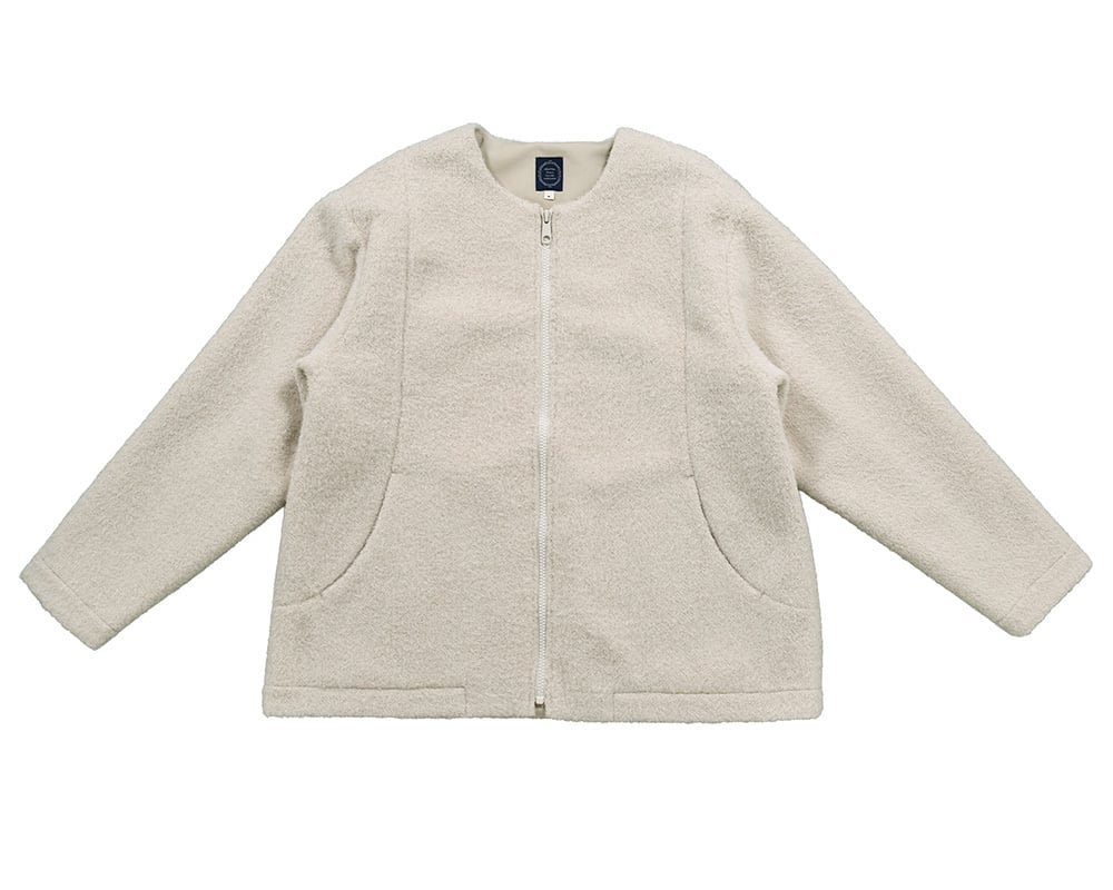 ファーティペットを付けてきれいめなスタイリングにも使いやすいアイテムです。本体は圧縮ウールのような表面感がある生地を使用しています。ティペットは、毛足が長く、手触りの良いファー生地であたたかく使えます。後裾につけたボタンでシルエットの調整が可能。