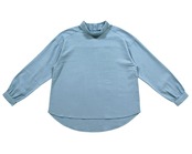 ロール部分を立ててハイネックとしてもご着用いただけます。微起毛のビエラ生地を使用。
