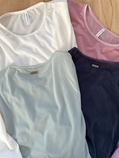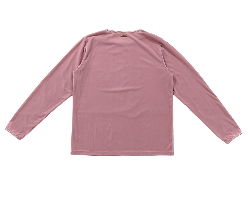 光沢感のあるベロア素材を使用したロングTシャツ。衿元と袖口にはサテンテープをあしらい、さりげない上品さをプラス。ほどよいゆとりのシルエットで着心地も抜群。シンプルながらも異素材使いが効いた、デイリーにもお出かけにも活躍する一枚です。