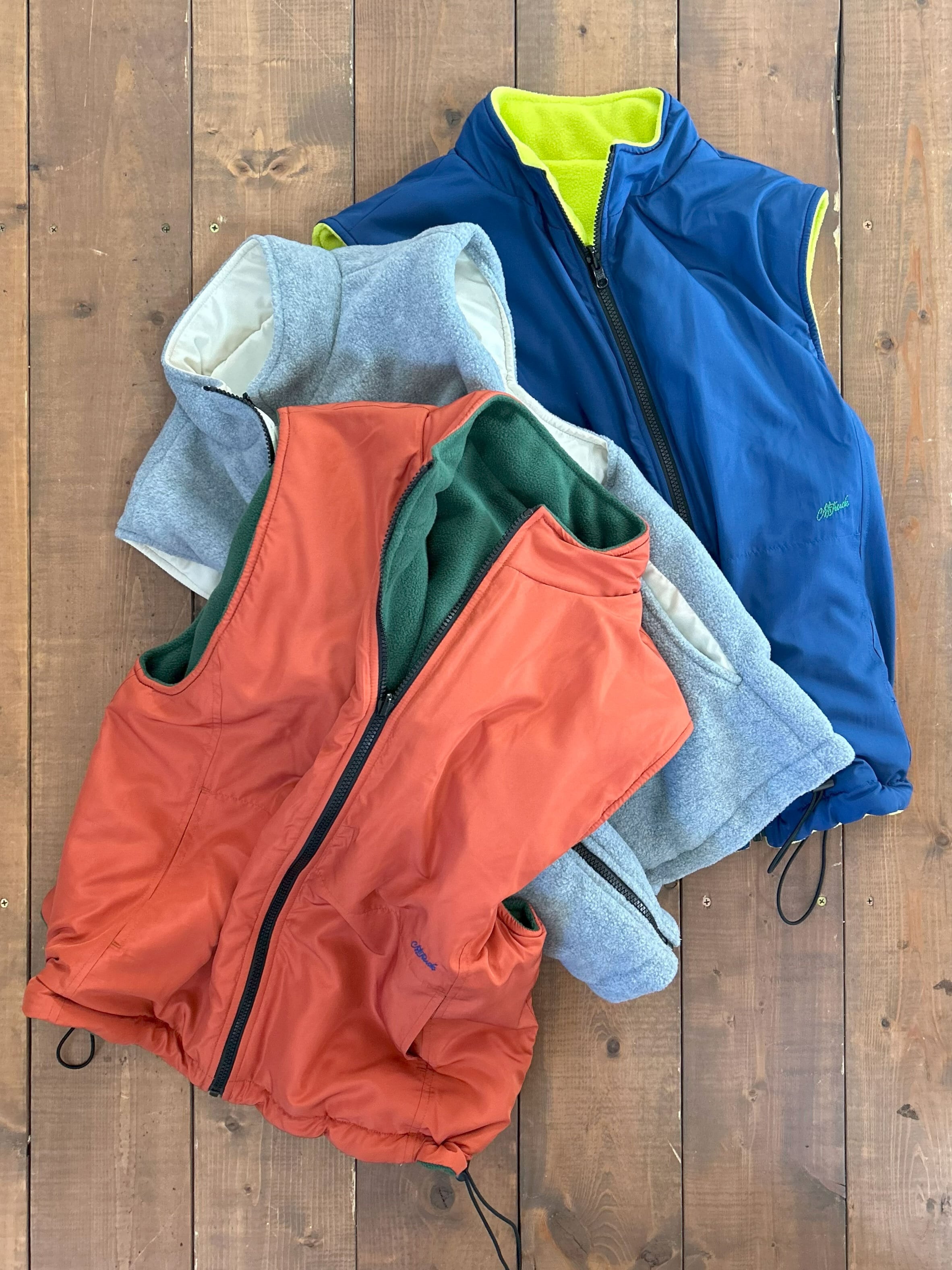 軽量ながらもしっかり暖かい中綿入りのリバーシブルベスト。