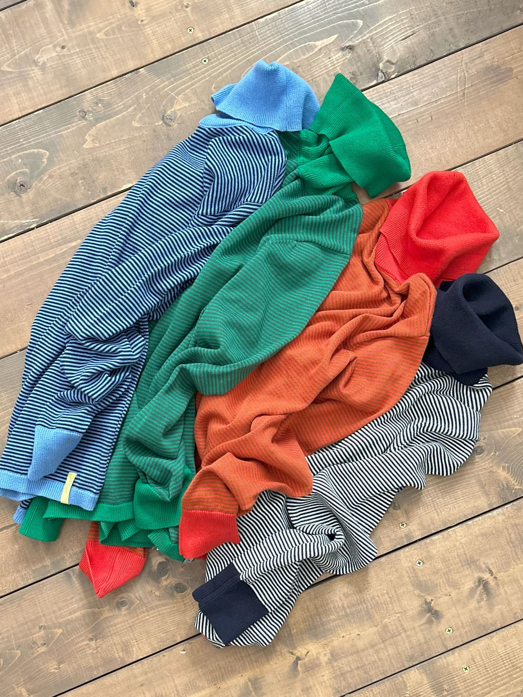 賑やかな配色の微塵ボーダーのタートルニットプルオーバー。程よいフィット感で首元まで暖かく、カジュアルながらも女性らしい印象に。シンプルなデザインで、パンツにもスカートにも合わせやすい一着です。