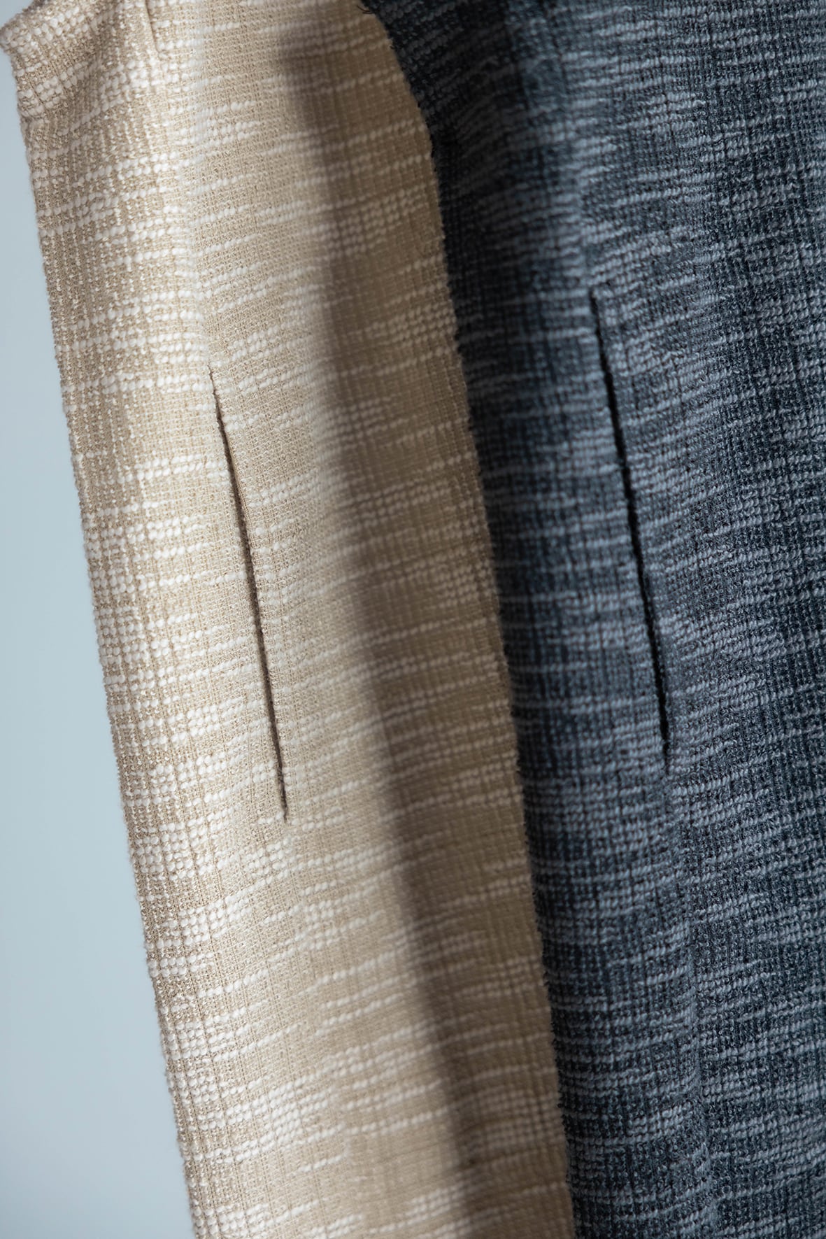 ファンシーツイードを伸縮性のあるジャージで表現した素材です。