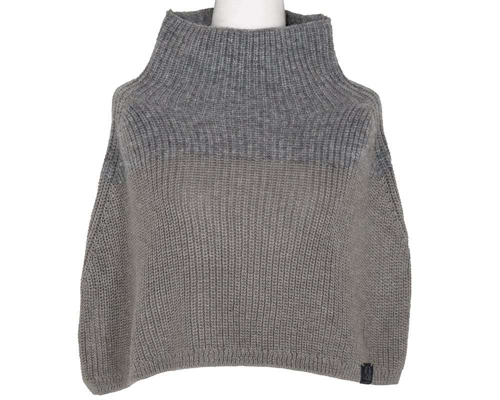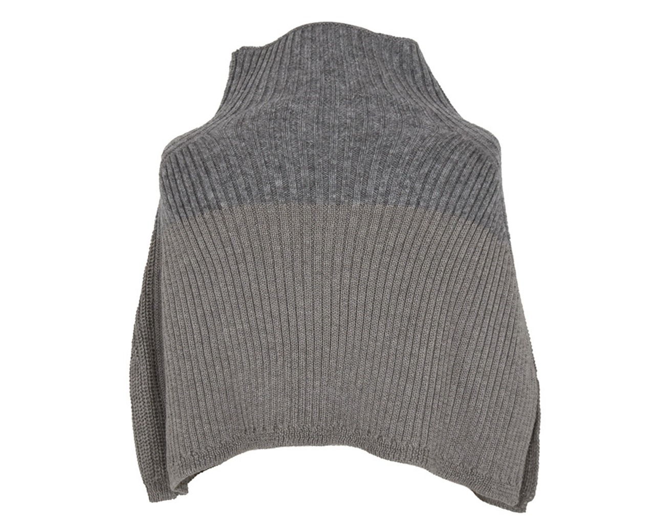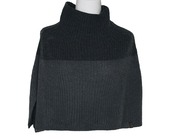 あぜ編みとリブ編み、前後で異なる編地を組み合わせたニットスヌードです。頭からかぶって着用するタイプで、ストールとは異なるフィット感があり、ショートベストのようなデザインで首元から胸元までしっかり防寒できます。コートやシャツの上からレイヤードするスタイリングもおすすめです。着け心地が軽く、冬の防寒アイテムとして活躍します。