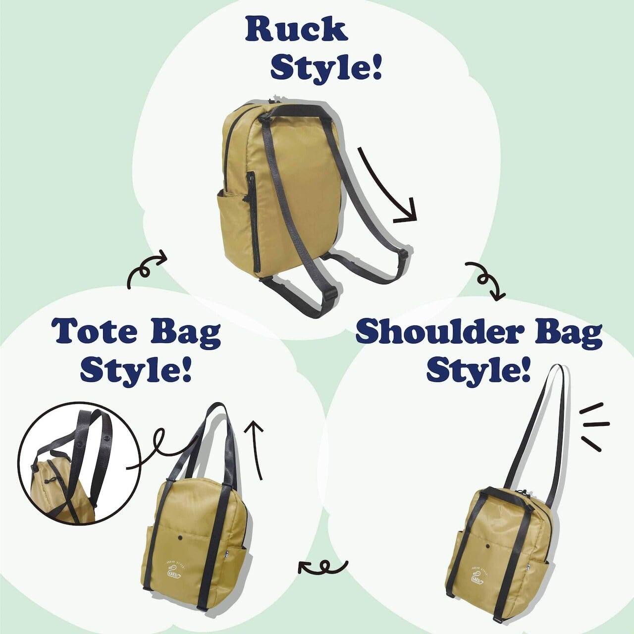 トートバッグで外出したけど、外出先で荷物が増えたからリュックに変身なんて使い方もOK。