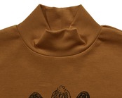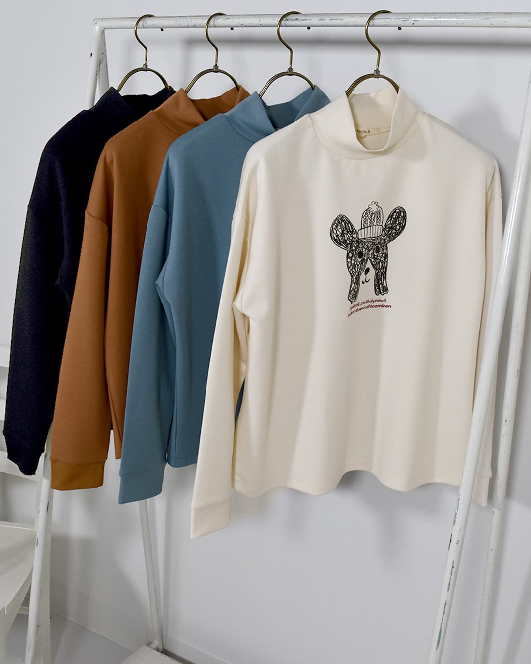 首元まで包み込むハイネックと、袖口のリブ仕様で、あたたかく着用できるアイテムです。