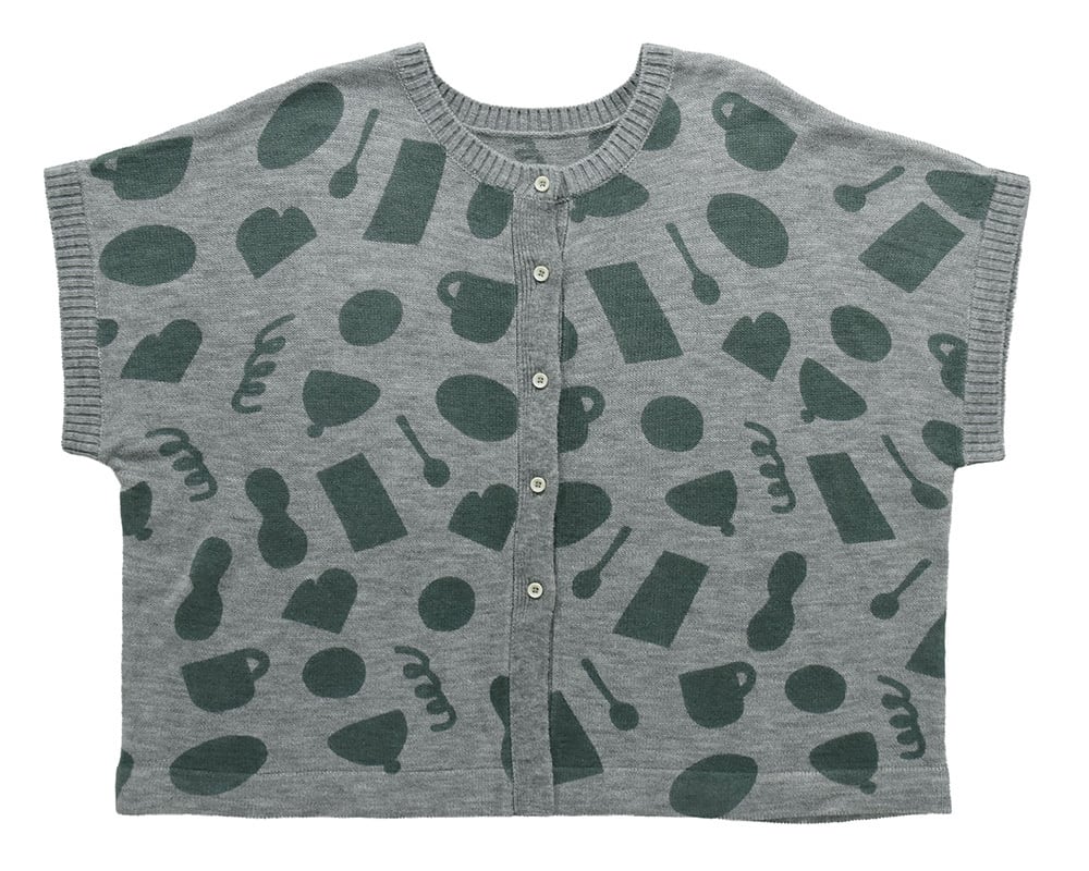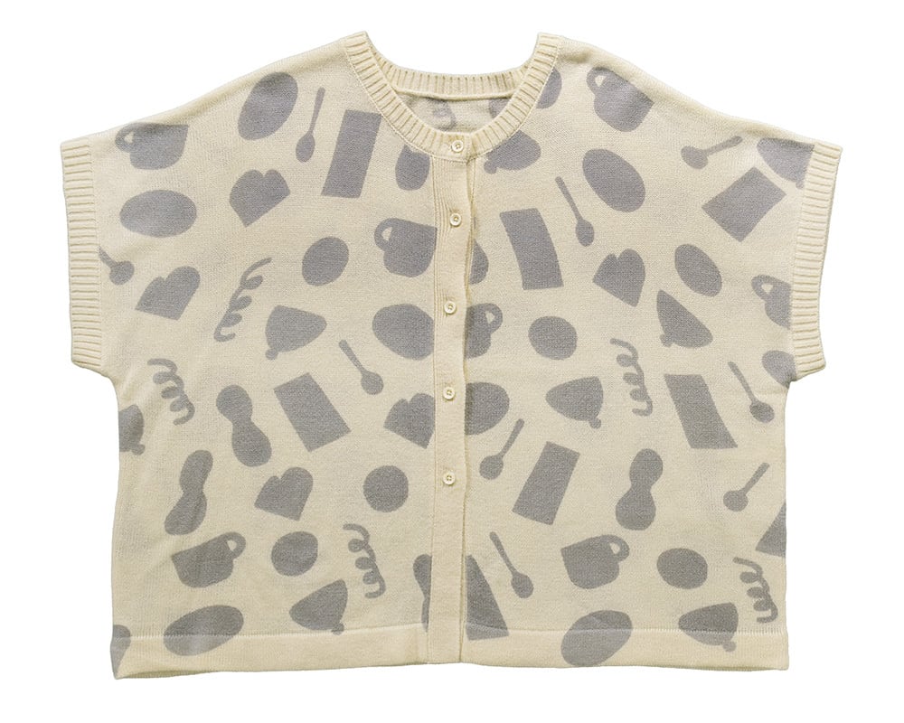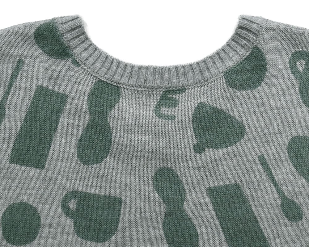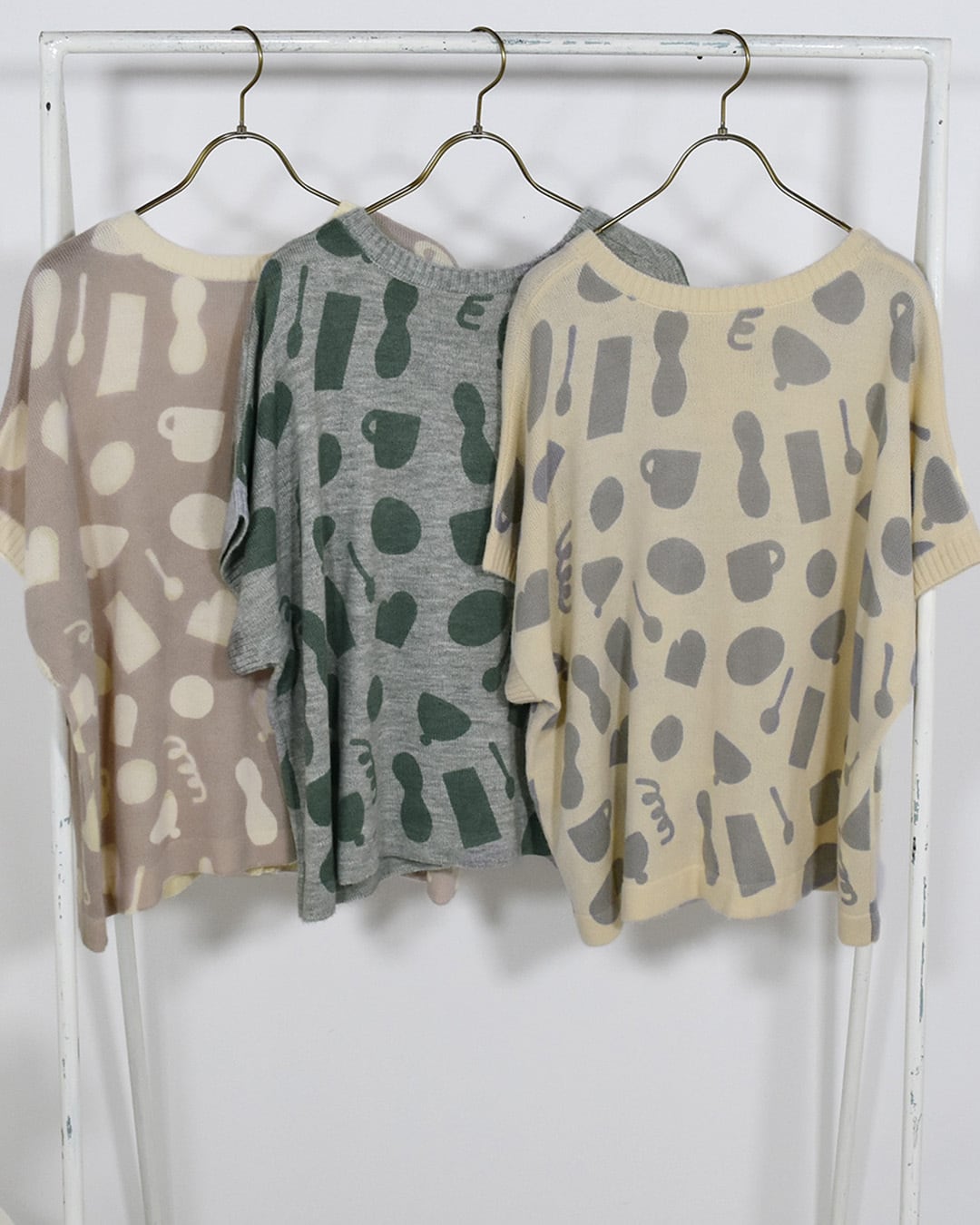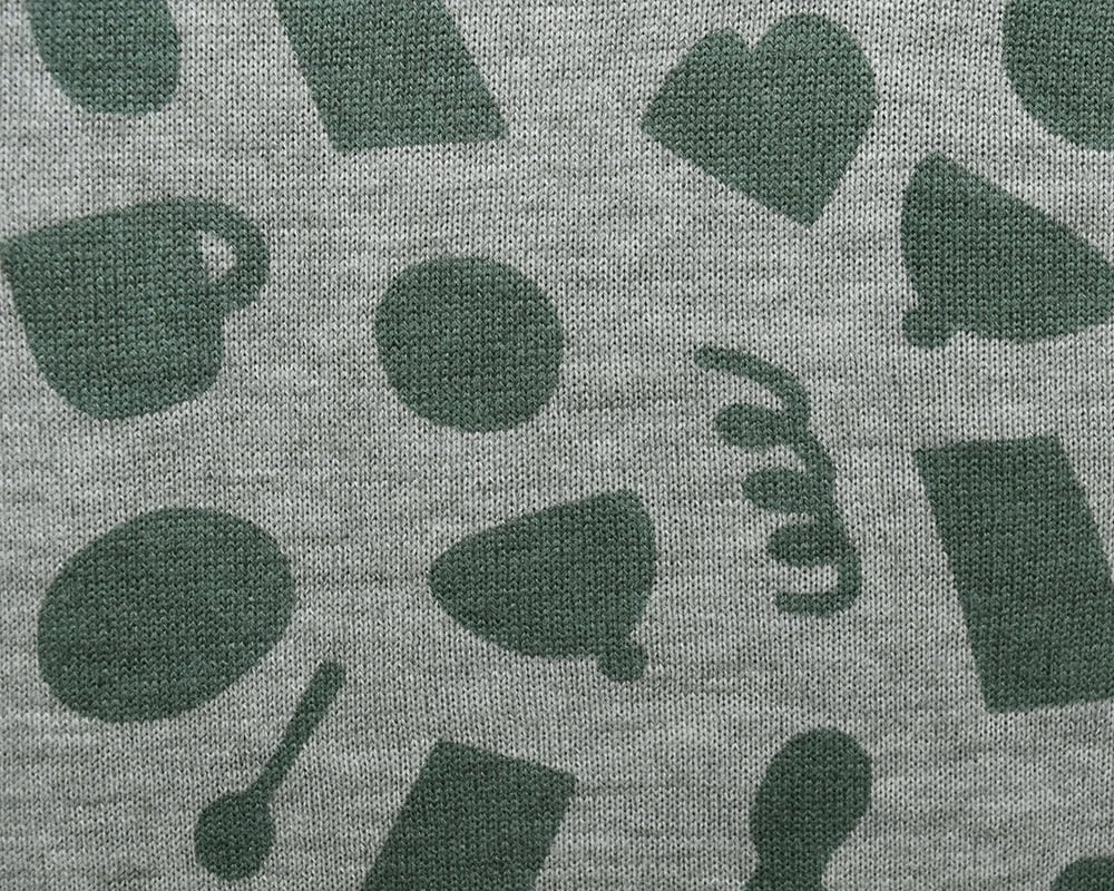 LYKKE(リュッケ)なひとときを思わせる、毛糸やミトン、ニット帽、マグカップ、スプーンなどのモチーフを散りばめた温もりのあるプリント柄です。