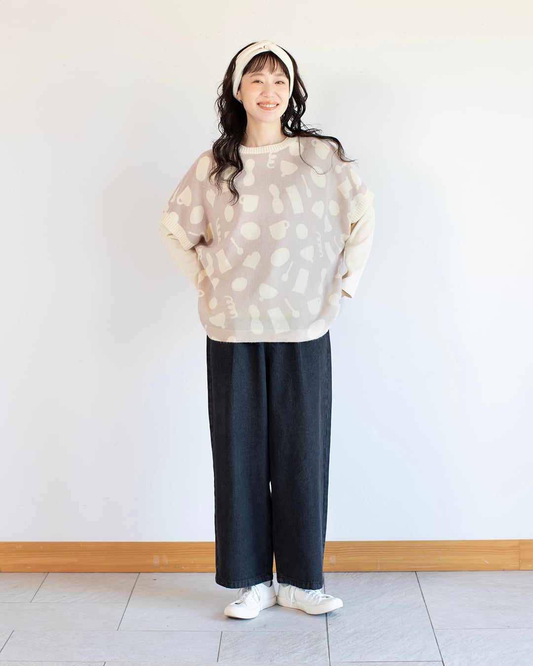ゆったりとしたワイドシルエットで、リラックス感のある着心地です