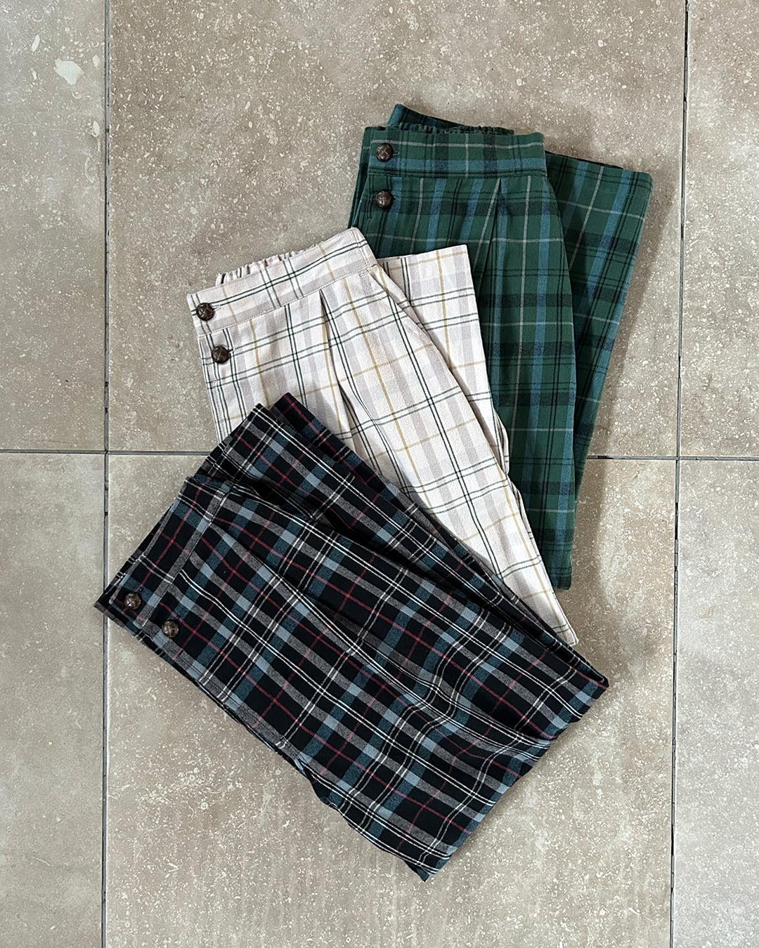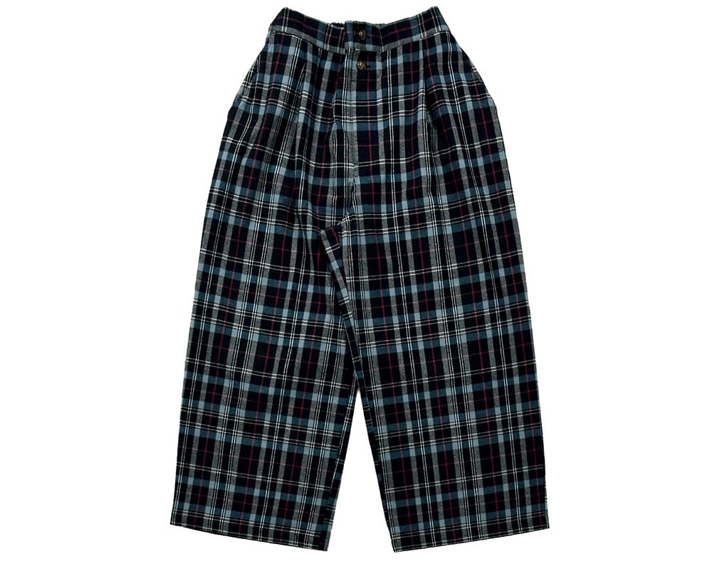 クラシックな印象の先染めチェック柄ツイル生地を使用した、冬にぴったりのウォーム感あるパンツ。