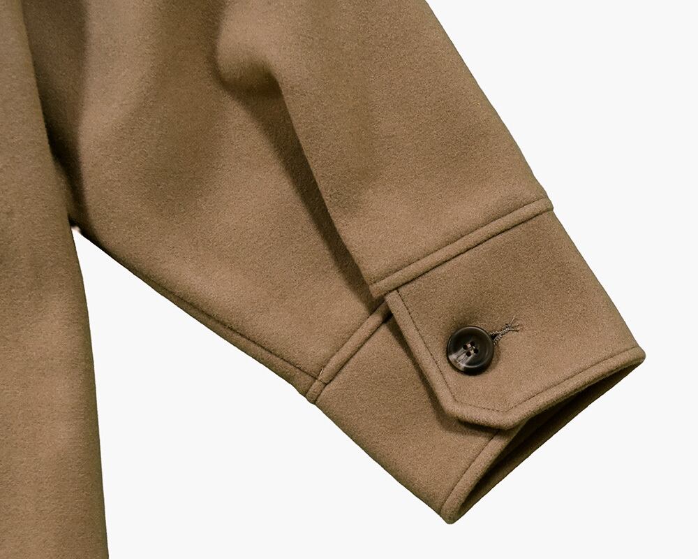 肩まわりにゆとりを持たせた、リラックス感のあるステンカラーのロングコート。定番のデザインでありながら、袖口にタックを入れ、カフス付の釦開きにすることで、ロールアップがしやすい仕様に。サイドには斜めに配置した深めのポケットを施し、デザイン性と実用性を両立。羽織るだけでこなれた印象を演出し、日常使いから軽いお出かけまで幅広く活躍する一枚です。