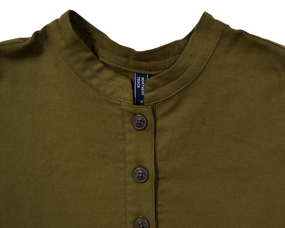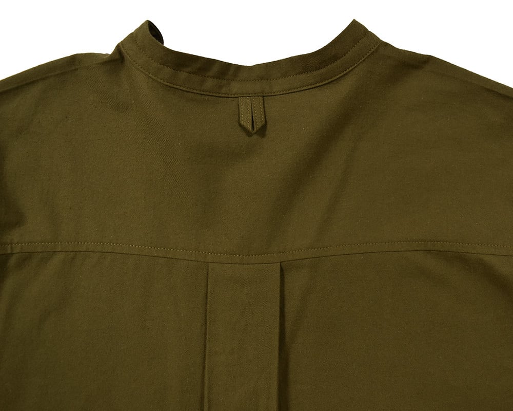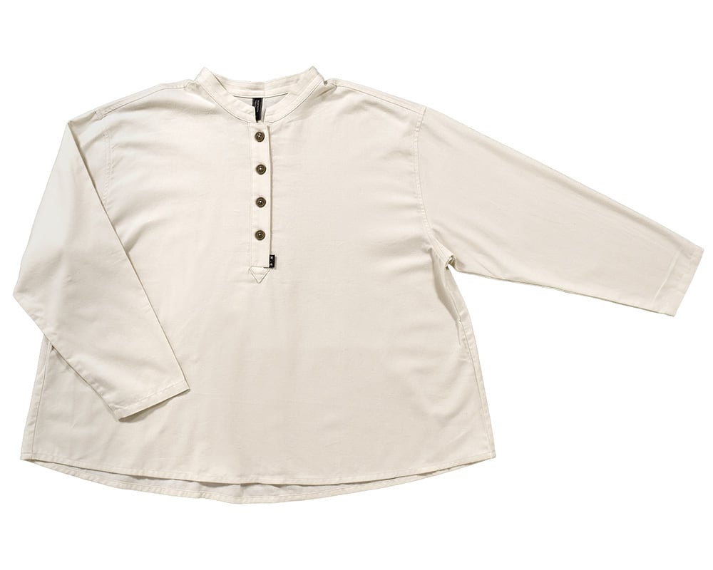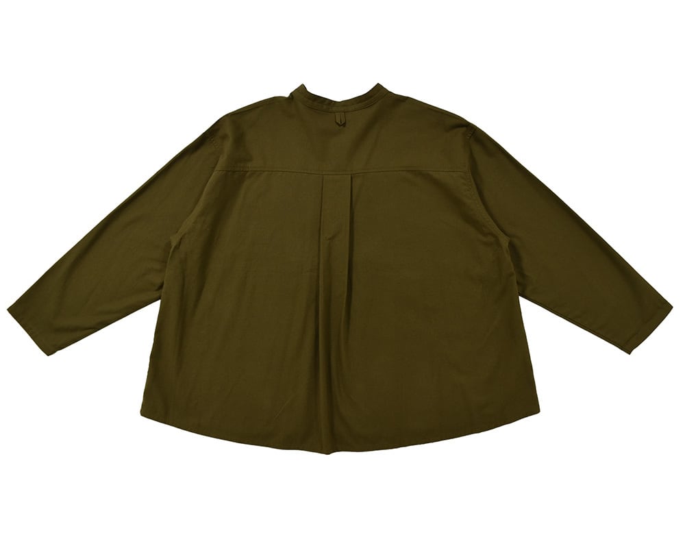 肌ざわりがよく、温かみのあるフランネル素材のプルオーバー。スタンドカラーで首元をカバーしてくれ、スタンドカラーに入れたステッチや刻印の入った釦でカジュアル感を出しています。オーバーサイズで少しAラインのシルエットにし、女性らしさをプラス。ボトムを選ばず合わせやすいアイテムです。