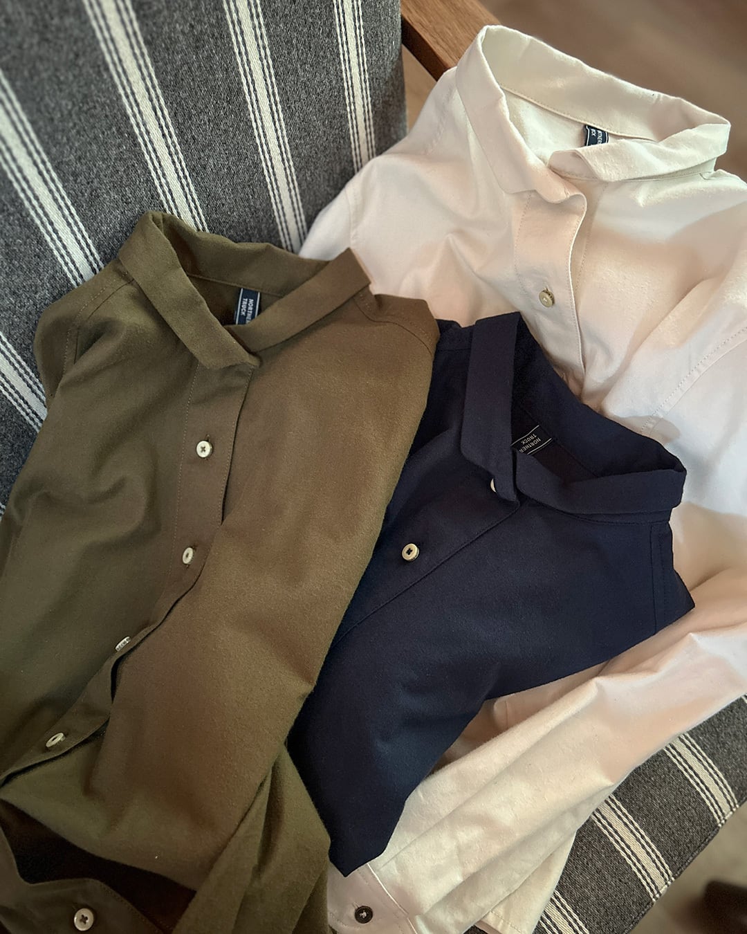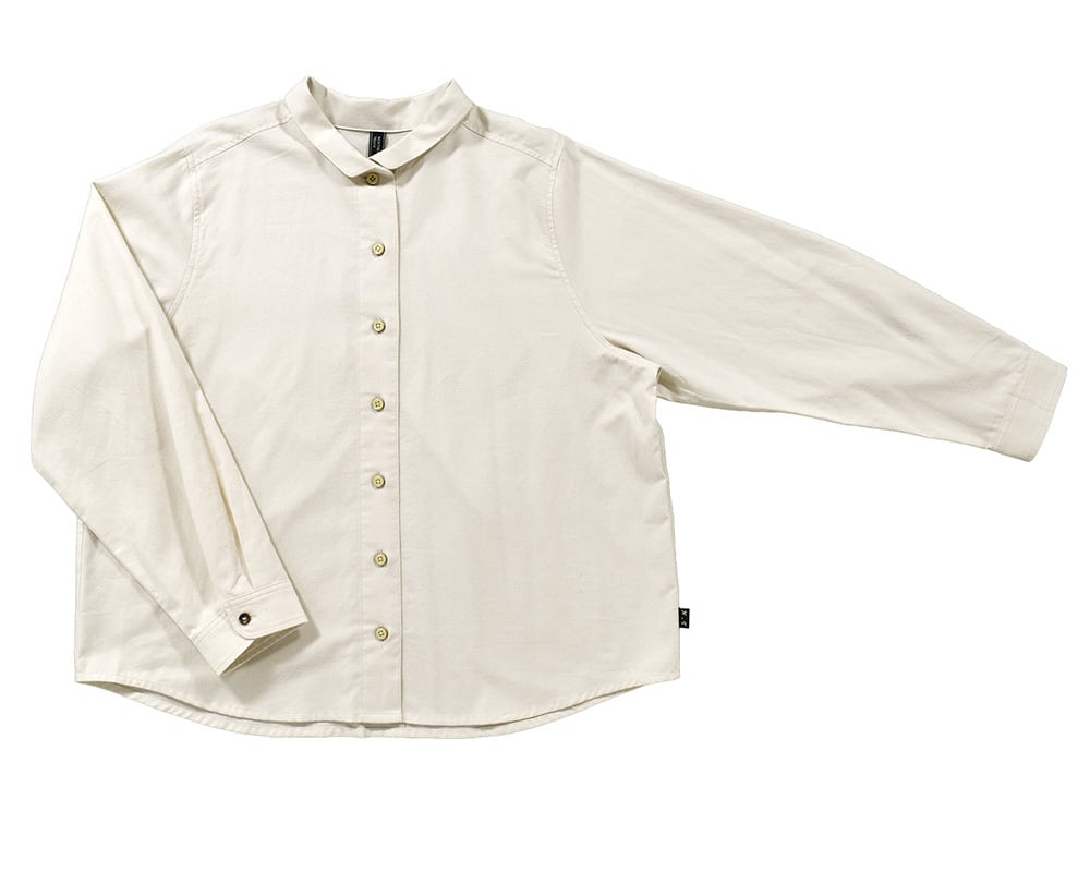 やわらかなフランネル生地を使用した、小さめの変形カラーのシャツ。優しい肌ざわりと、ふんわりとした温かさが魅力です。後ろの切替にはギャザーを入れ女性らしさをプラスシンプルなデザインは、1枚での着用はもちろん、ニットやアウターのインナーとしても活躍してくれるアイテムです。