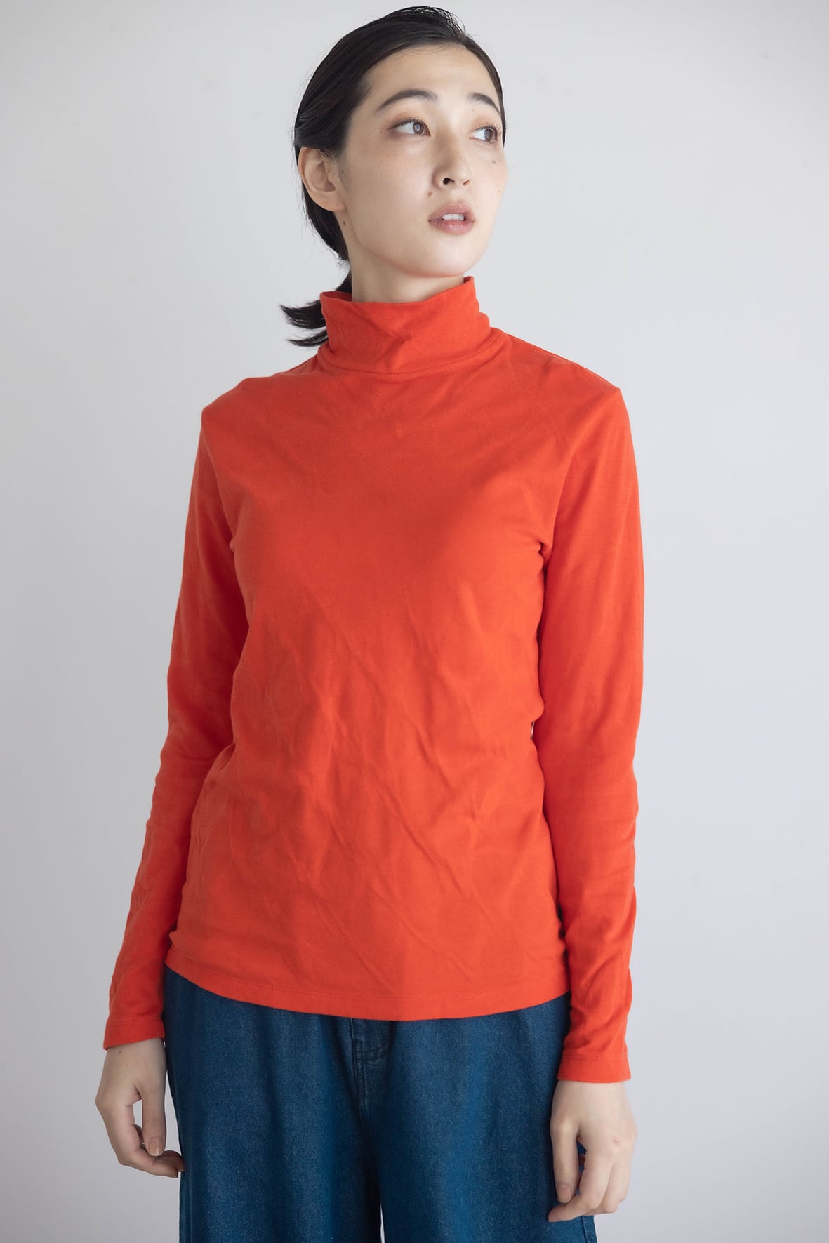 身体に沿いすぎない程よくゆとりのあるサイズ感で、ニットやベストのインナーとしても活躍するタートルネックプルオーバーです。首元までしっかり暖かく、重ね着しやすい設計で冬のスタイリングに重宝する一枚です。