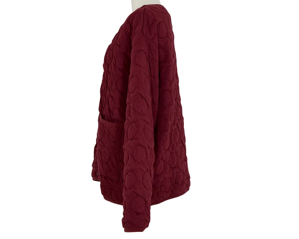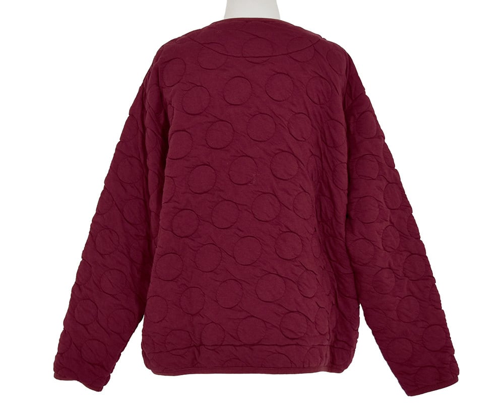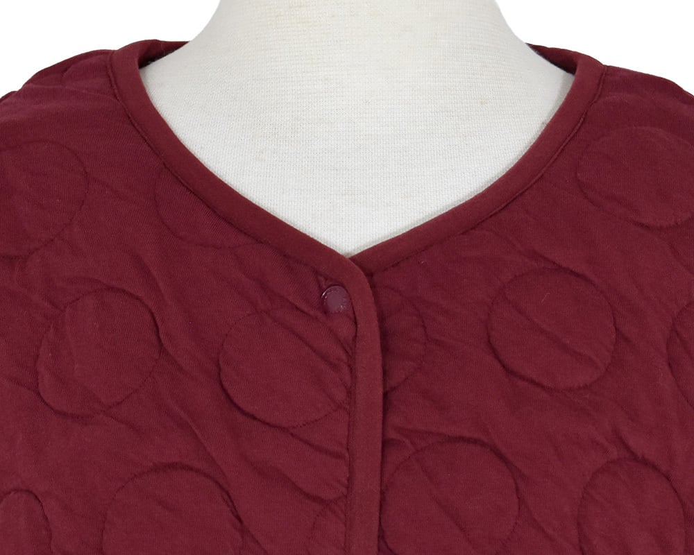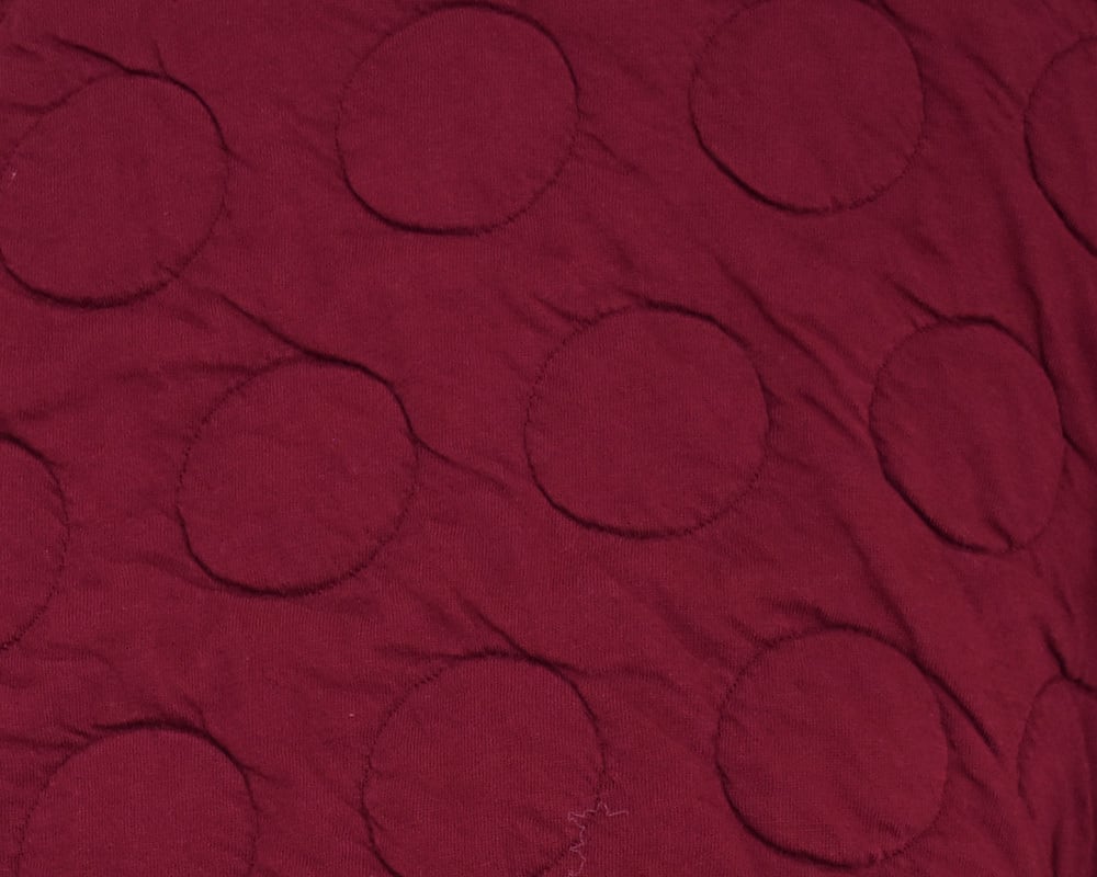 ドット柄が浮き出るように編み立てた、ふくれニットジャカード素材です。薄いワタを入れることで、生地に膨らみを出した、柔らかい着心地の暖かい素材です。