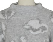 フェザー糸を使用したジャカード編みでトレンド感のあるシャギー感のある生地。色の違う二種類の糸を使用することで、柄に立体感を出しています。とても軽く柔らかな、肌触りの良い素材です。