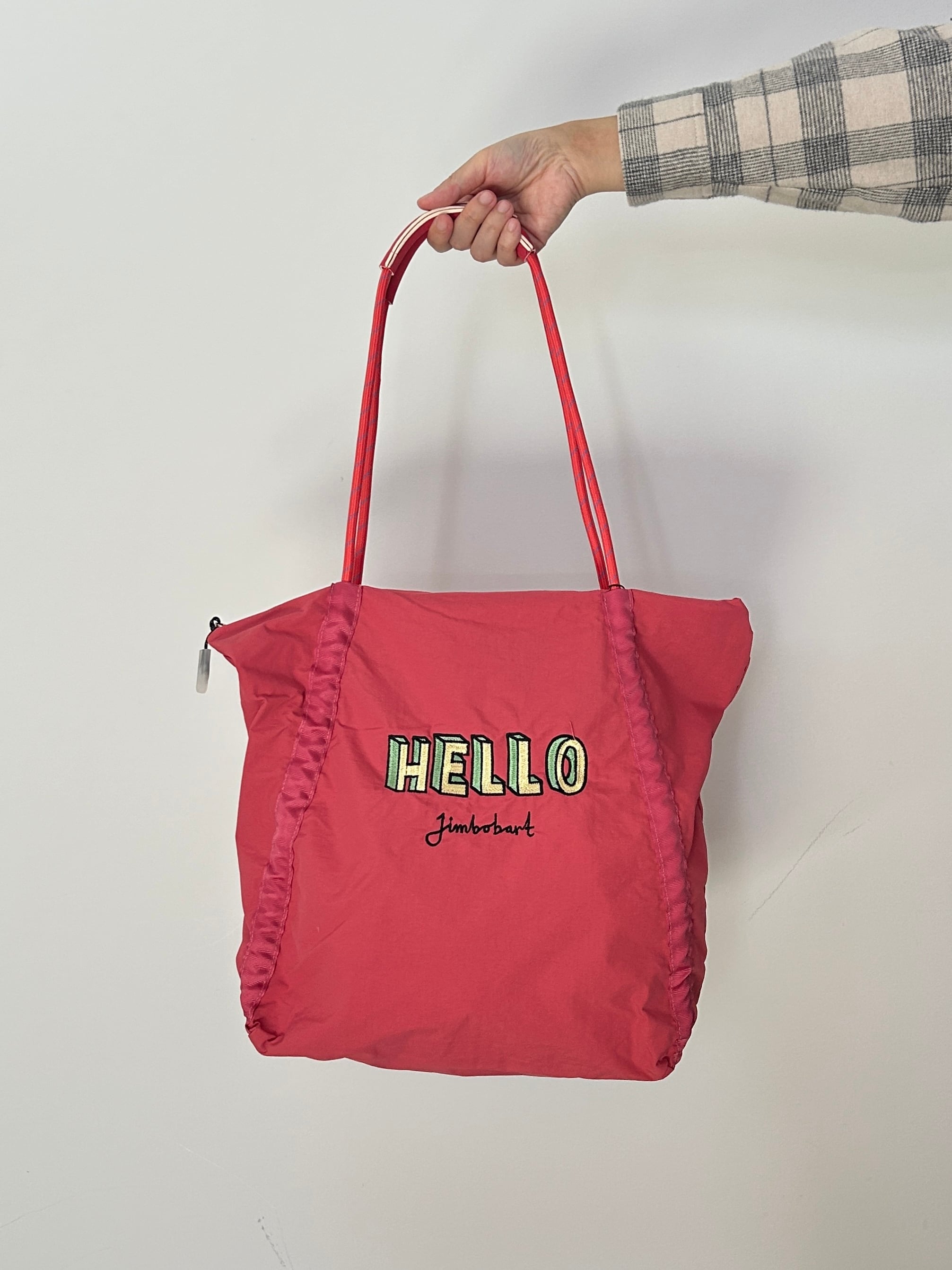 長めのロープハンドルは肩にかけやすくカバー付きなので疲れにくく、ハンドルをキュッと絞ることでバッグを変形することができます。