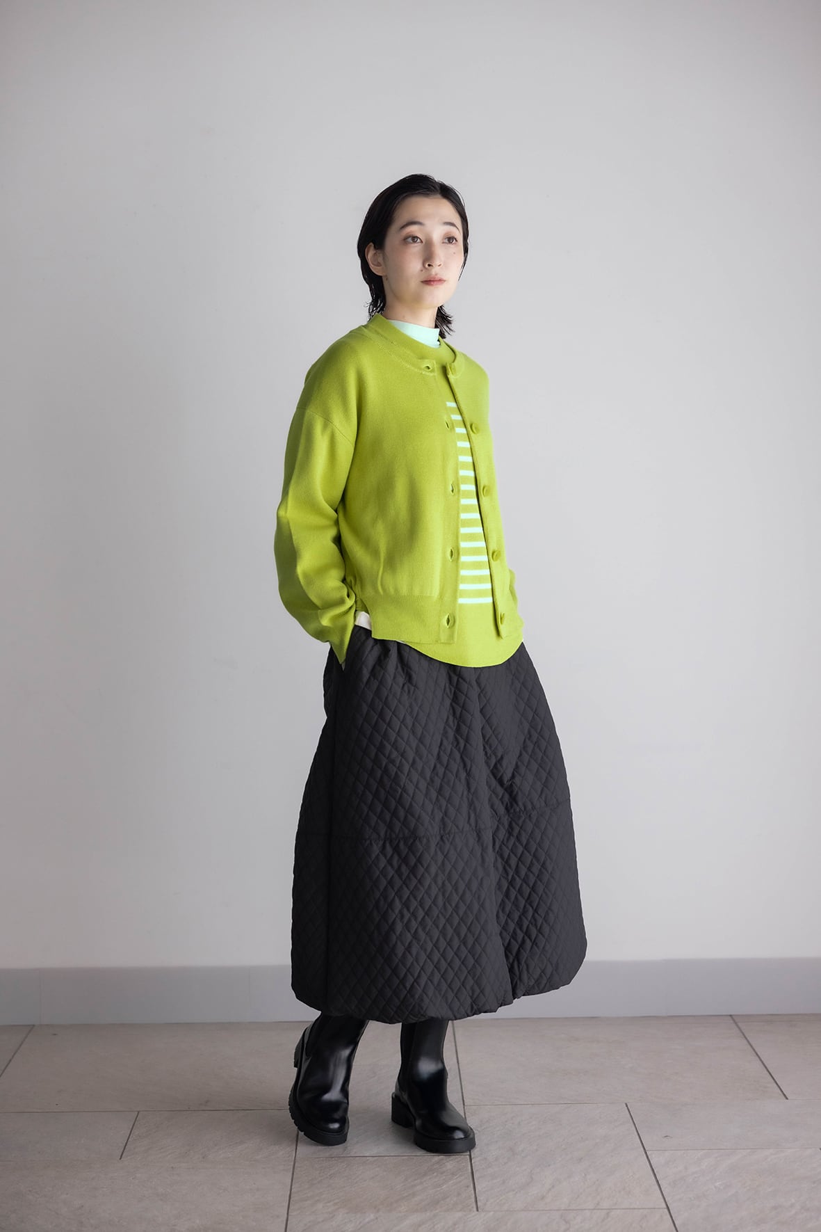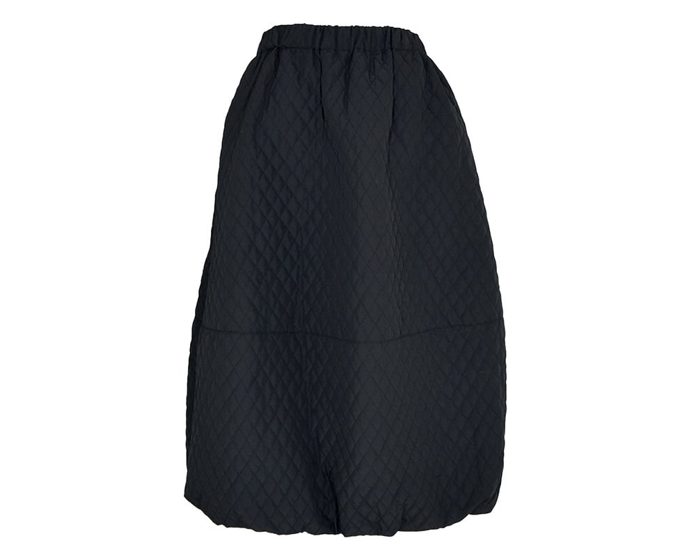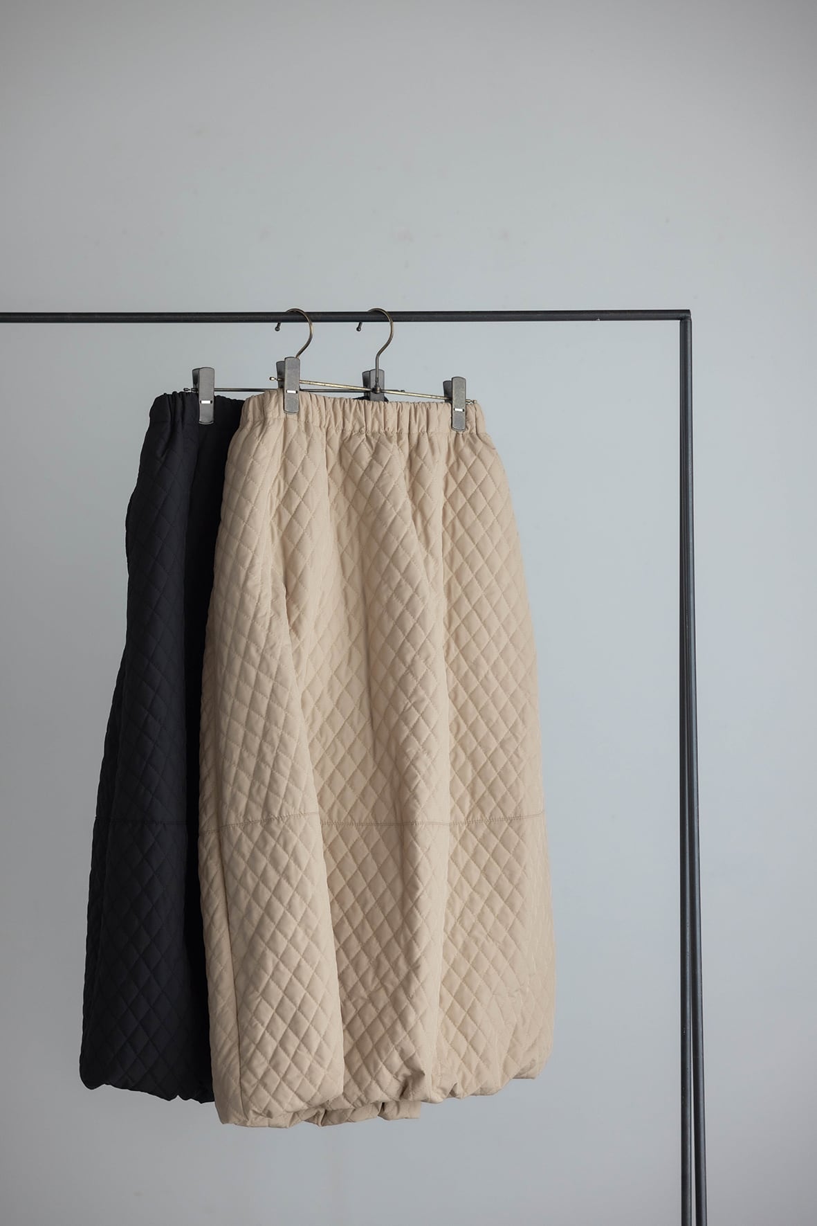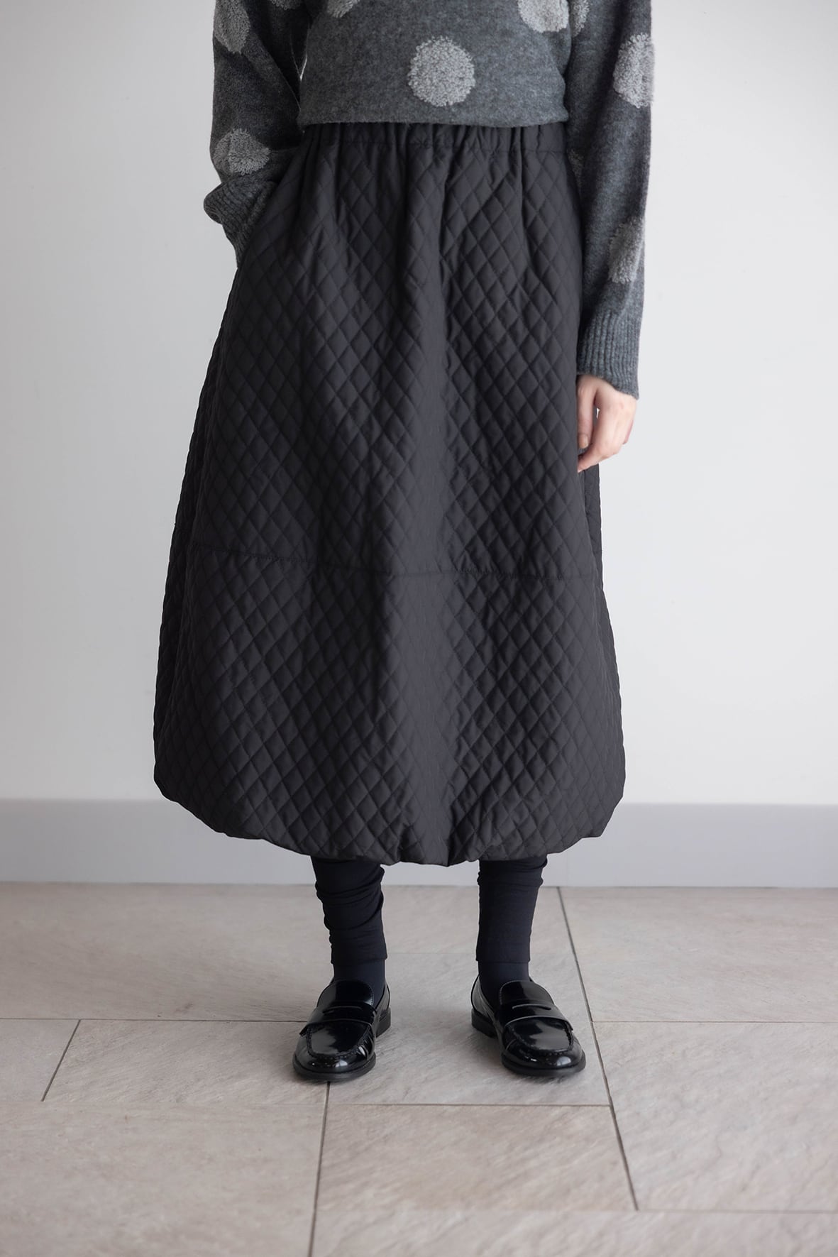裾にゴムを入れたバルーンスカートです。ヒップまわりはすっきりと見せつつ、裾切り替えを入れて立体的なフォルムに仕上げました。