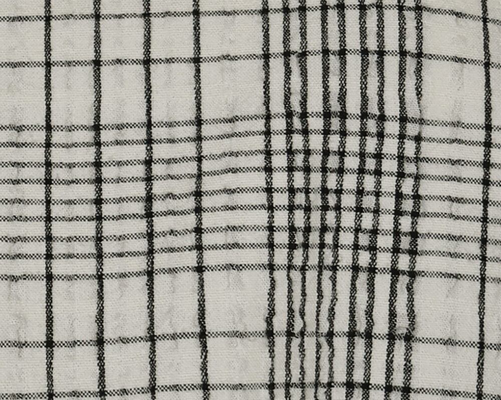 コットン素材にストレッチ糸を織り込むことで凹凸のある風合いに仕上げています。アイロンいらずの扱いやすい素材です。