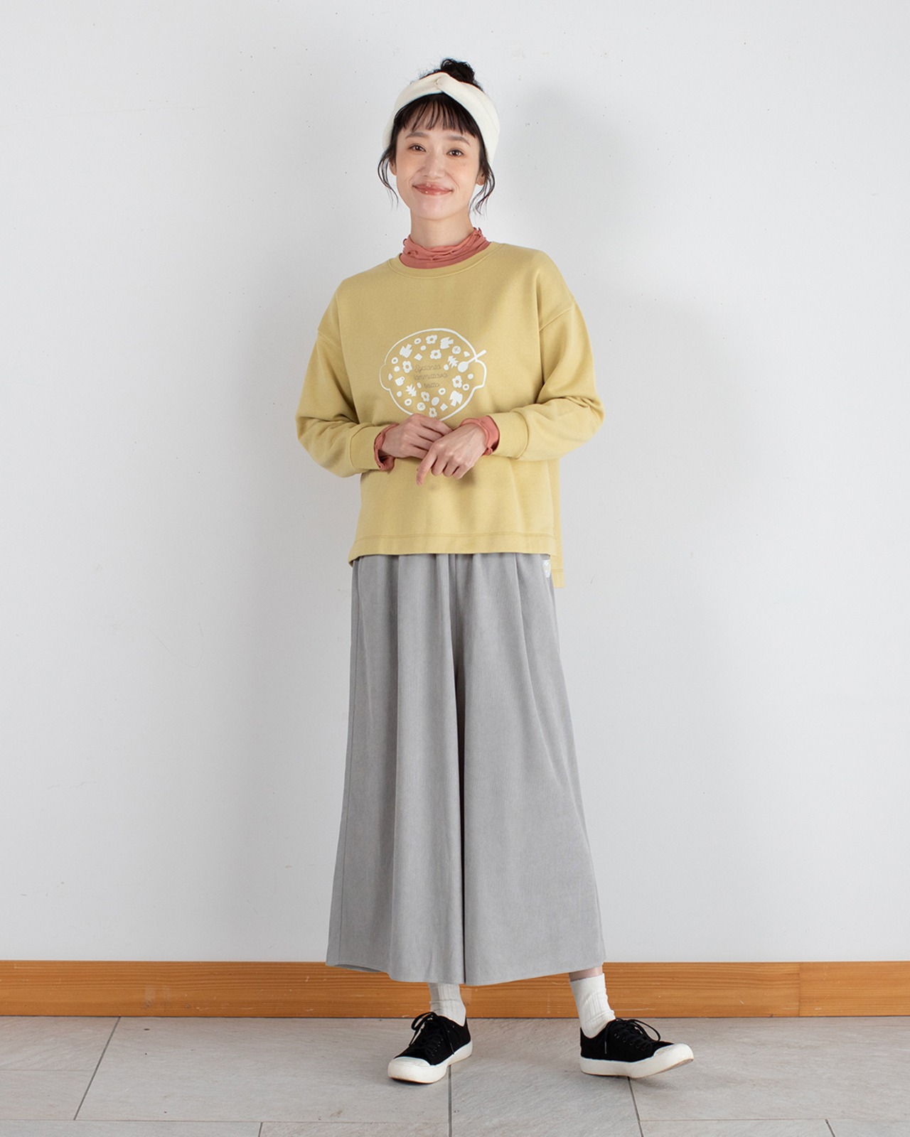 スカートのようなシルエットで、実はパンツ仕立て。動きやすく快適に過ごせるスカンツです。