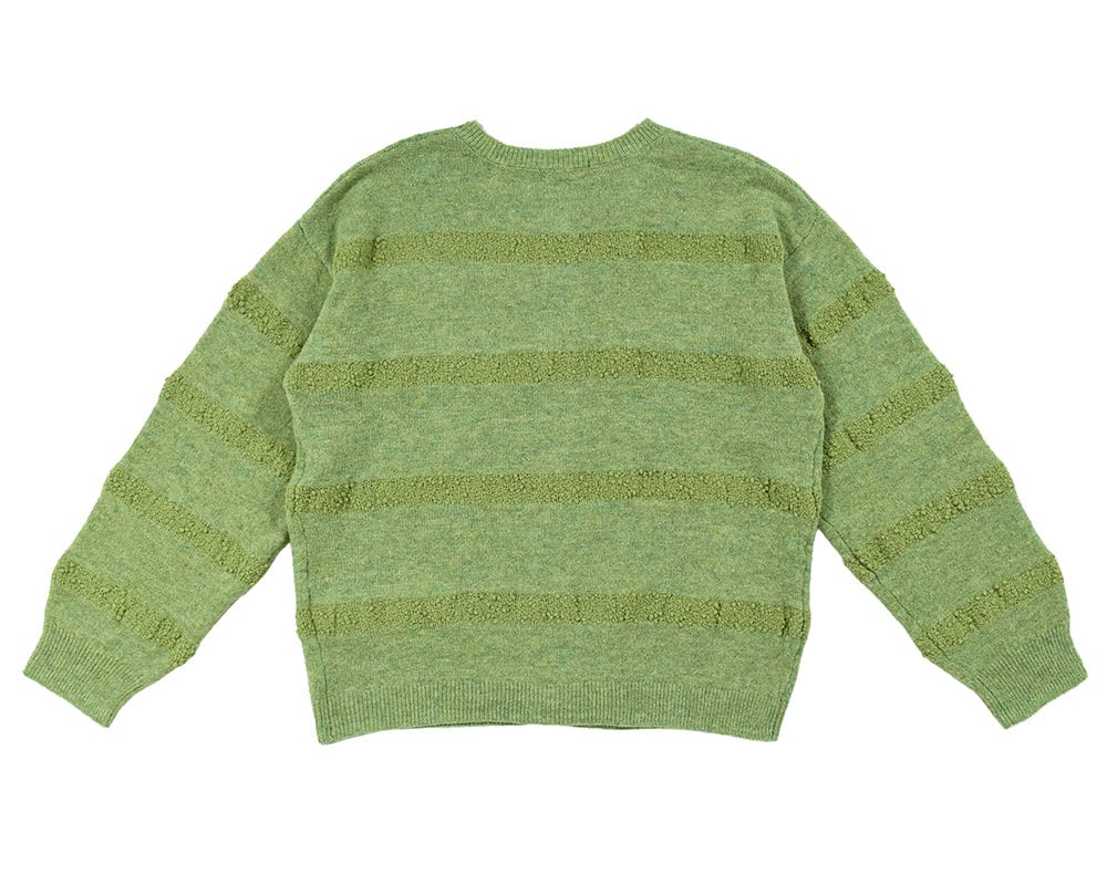 本体にはもちもち感のある糸を、ボーダー部分には立体感のある糸を使用しアクセントに。