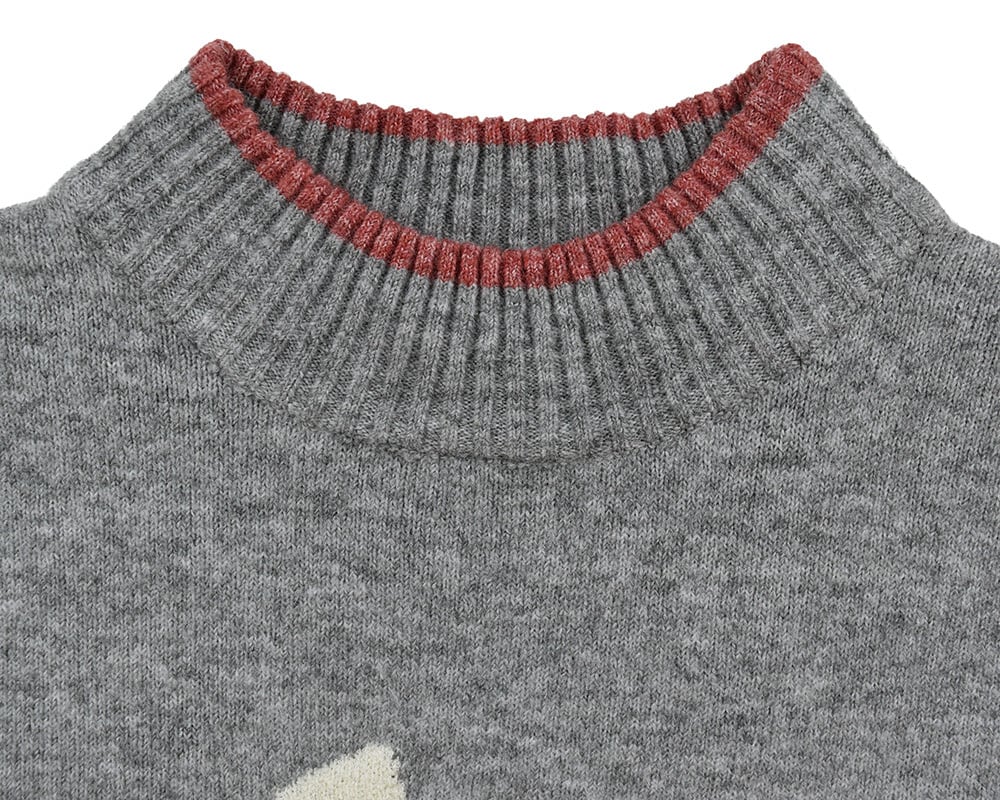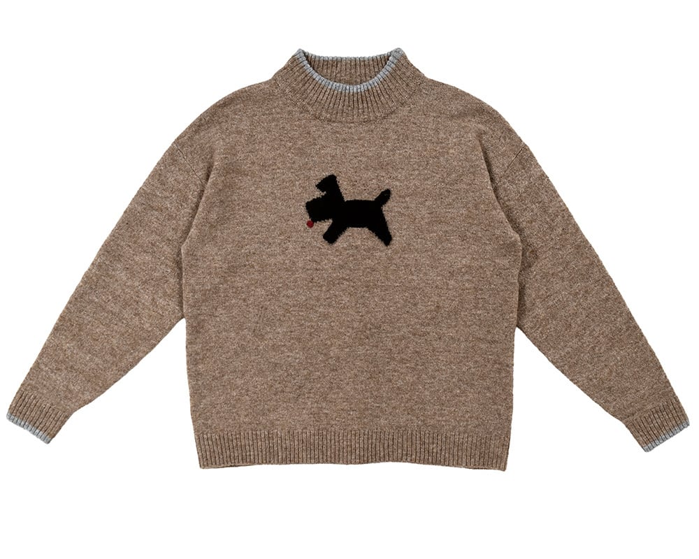 もちもちとした肌触りの、胸元にテリアのジャカード柄をあしらったモックネックプルオーバー